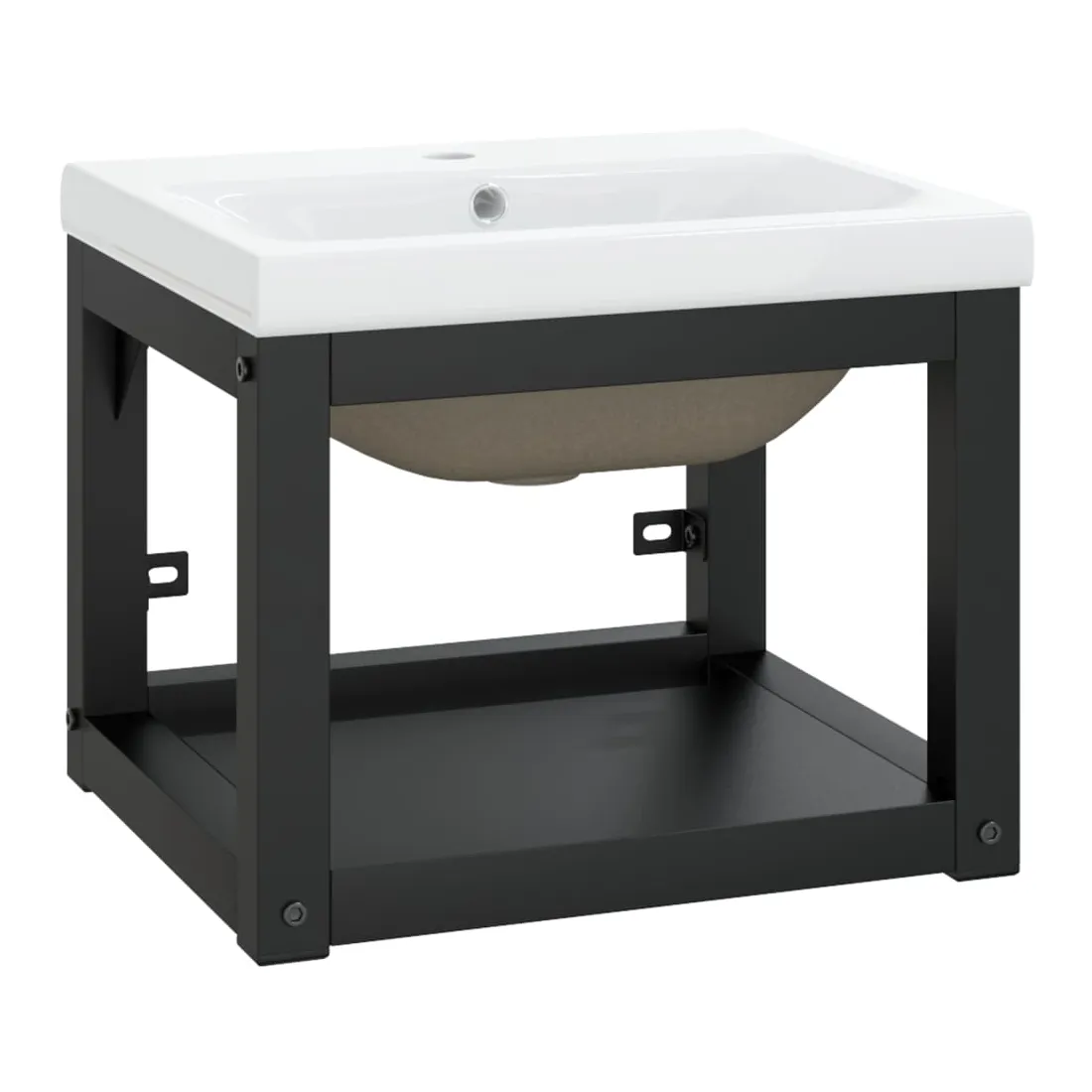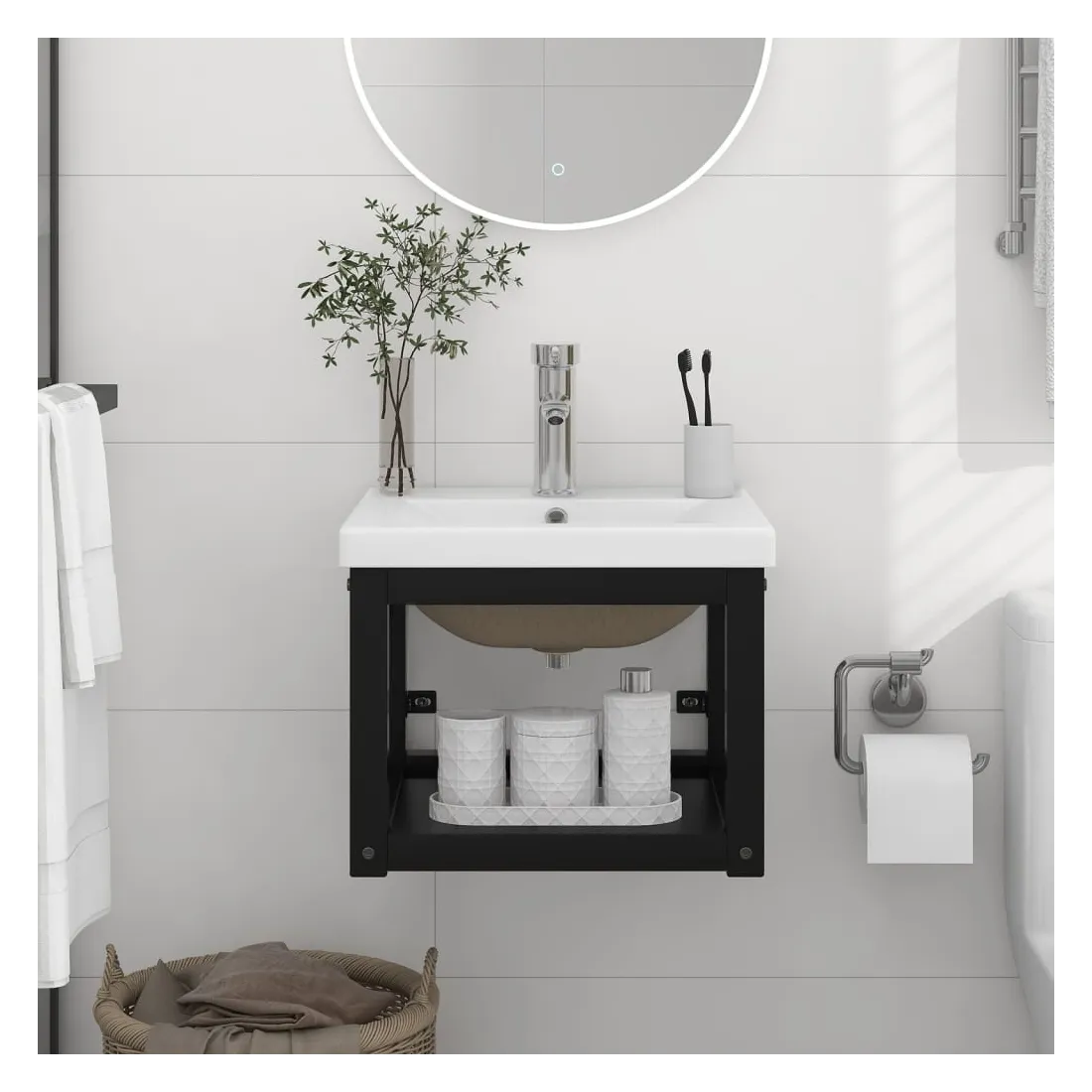 Ce cadre de lavabo de salle de bain mural avec une vasque à encastrer s'intègre parfaitement à votre salle de bain ou à votre salle d'eau, avec un aspect propre et ordonné. Le support de lavage est fabriqué en fer enduit de poudre, ce qui le rend stable et durable. Ce cadre de lavabo permet d'accéder facilement aux serviettes et aux paniers et crée un espace plus vaste qu'un rangement fermé. Fabriqué en céramique, le bassin peut non seulement servir de récipient pour un usage quotidien mais aussi d'ornement dans votre espace de vie. Grâce à son design tendance et contemporain, ce lavabo s'adaptera à tout décor. Un trop-plein est également prévu pour vidanger l'eau lorsque le lavabo est trop plein. Sa surface émaillée lui confère un design moderne et élégant. De plus, le cadre de lavabo et la vasque sont faciles à nettoyer avec un chiffon humide. Remarque : le robinet et le vidange ne sont pas inclus dans la livraison.