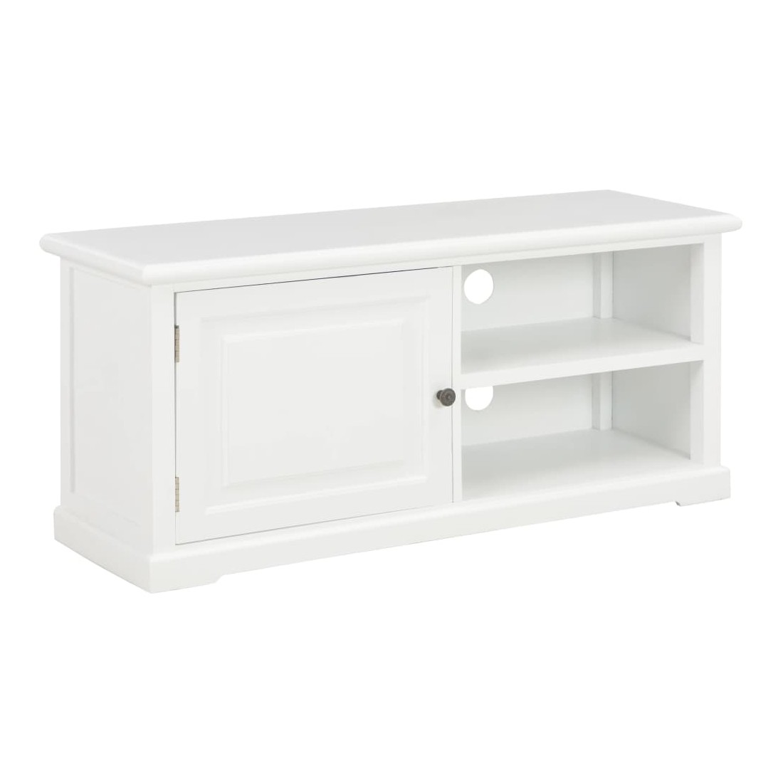 Avec un design à la fois tendance et pratique, ce meuble TV deviendra certainement un point central de votre pièce. Fabriqué en MDF et en bois de Paulownia solide, ce meuble TV moderne comprend 1 porte et 2 compartiments ouverts permettant de garder divers objets tels que des appareils multimédia, des consoles de jeu, des magazines, etc. Grâce aux 2 accès de câble, tous les câbles seront soigneusement cachés. Notre armoire HiFi est facile à assembler.