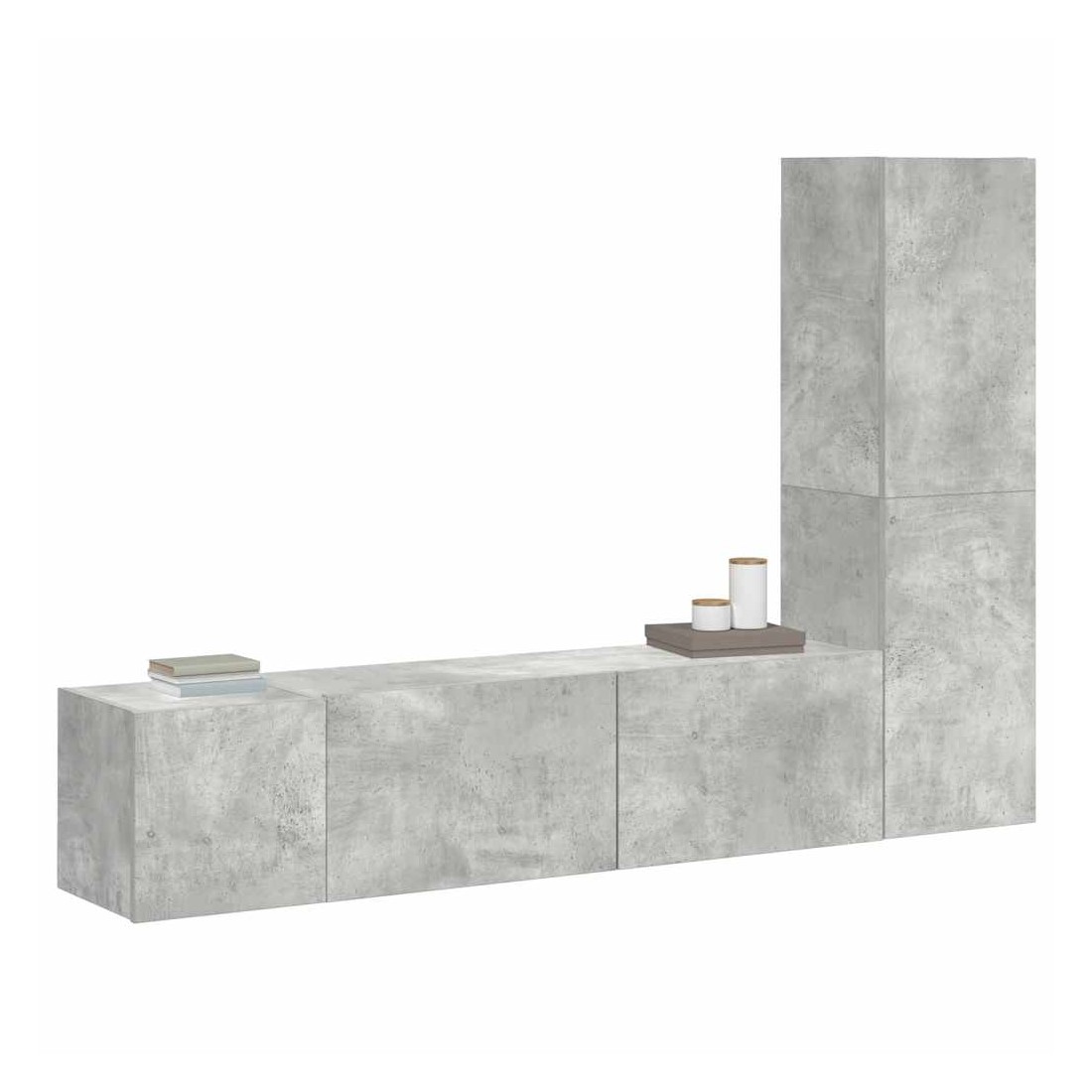 Cet ensemble de meuble TV robuste est destiné à être le point de mire de votre pièce avec un design à la fois tendance et pratique. Le meuble TV est fixé au mur, ce qui en fait un supplément intemporel à votre maison. Il offre de nombreux compartiments de rangement, ce qui en fait un endroit idéal pour stocker tous vos livres, magazines, DVD ou autres objets. Le meuble stéréo est facile à entretenir et à nettoyer avec un chiffon humide.
