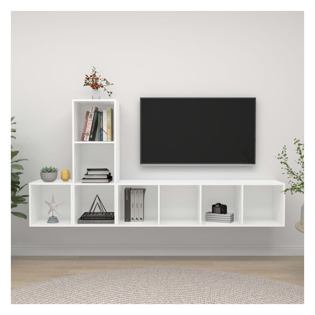 Équipé d'un grand espace de rangement pour organiser divers articles, cet ensemble de meuble TV suspendu sera certainement un supplément pratique et accrocheur dans votre maison. Le meuble TV est fixé au mur, ce qui en fait un supplément intemporel à votre maison. Cet ensemble d’armoire HiFi est idéal pour afficher ou garder bien organisés ou à portée de main tous les articles préférés. De plus, l’ensemble d’armoire stéréo est facile à nettoyer avec un chiffon humide.