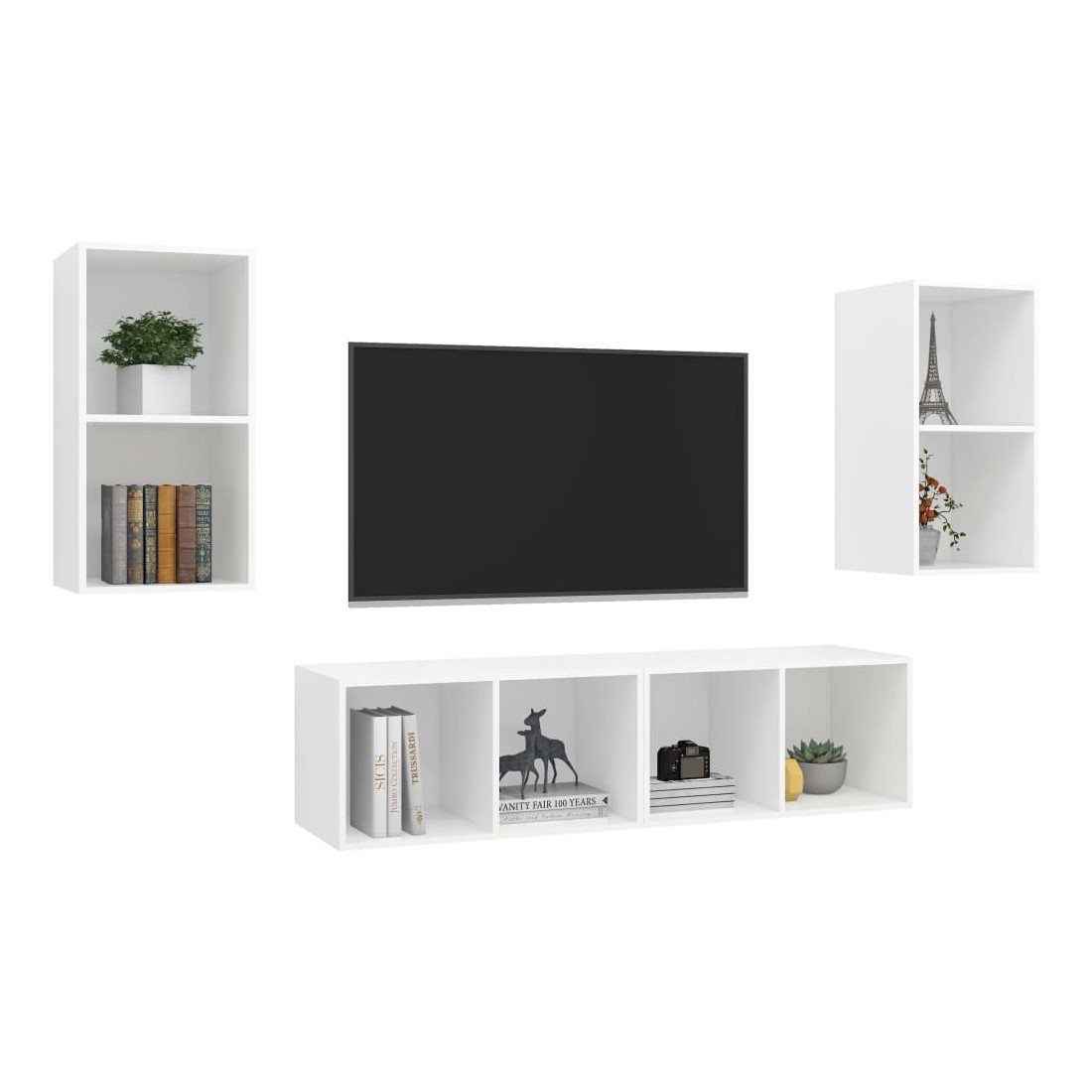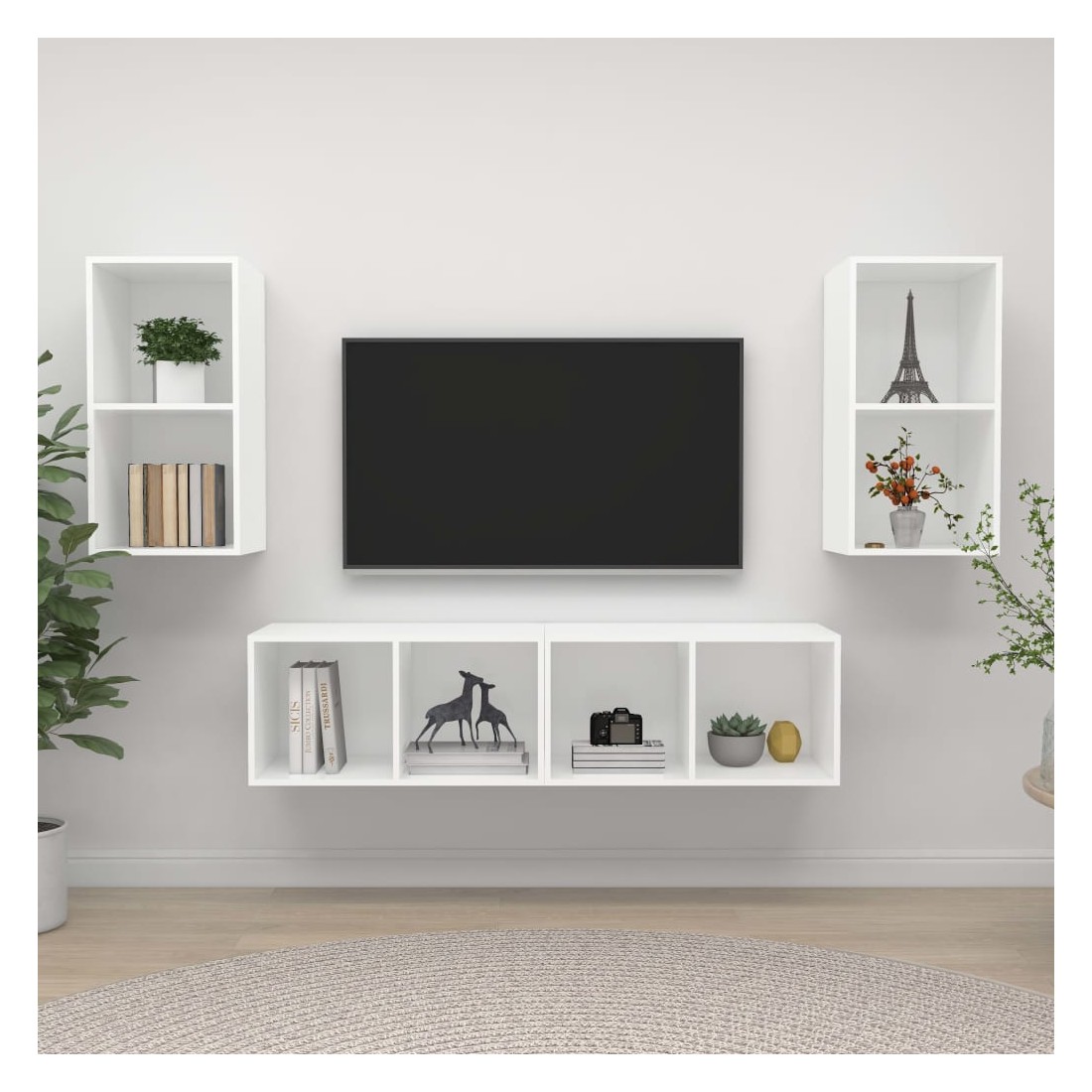 Équipé d'un grand espace de rangement pour organiser divers articles, cet ensemble de meuble TV mural sera certainement un supplément pratique et accrocheur dans votre maison. Ces meubles TV peuvent être accrochés au mur verticalement ou horizontalement selon vos préférences. Chaque armoire HiFi est équipée de 2 compartiments, vous pouvez donc afficher ou garder tous les objets que vous souhaitez bien organisés et à portée de main. De plus, les armoires stéréo sont faciles à nettoyer avec un chiffon humide.