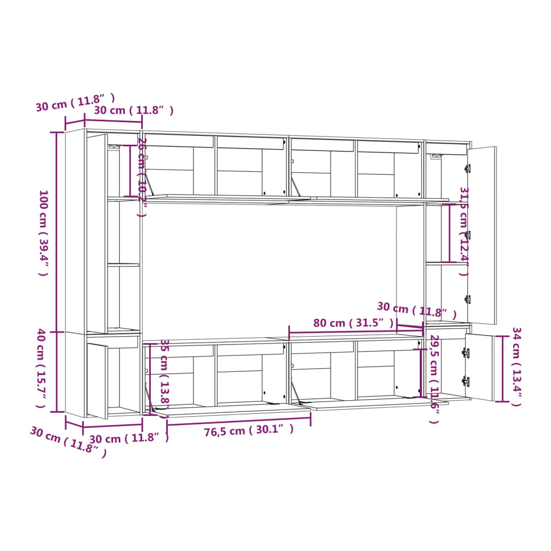 • 4 x meuble TV : 80 x 30 x 35 cm (l x P x H)