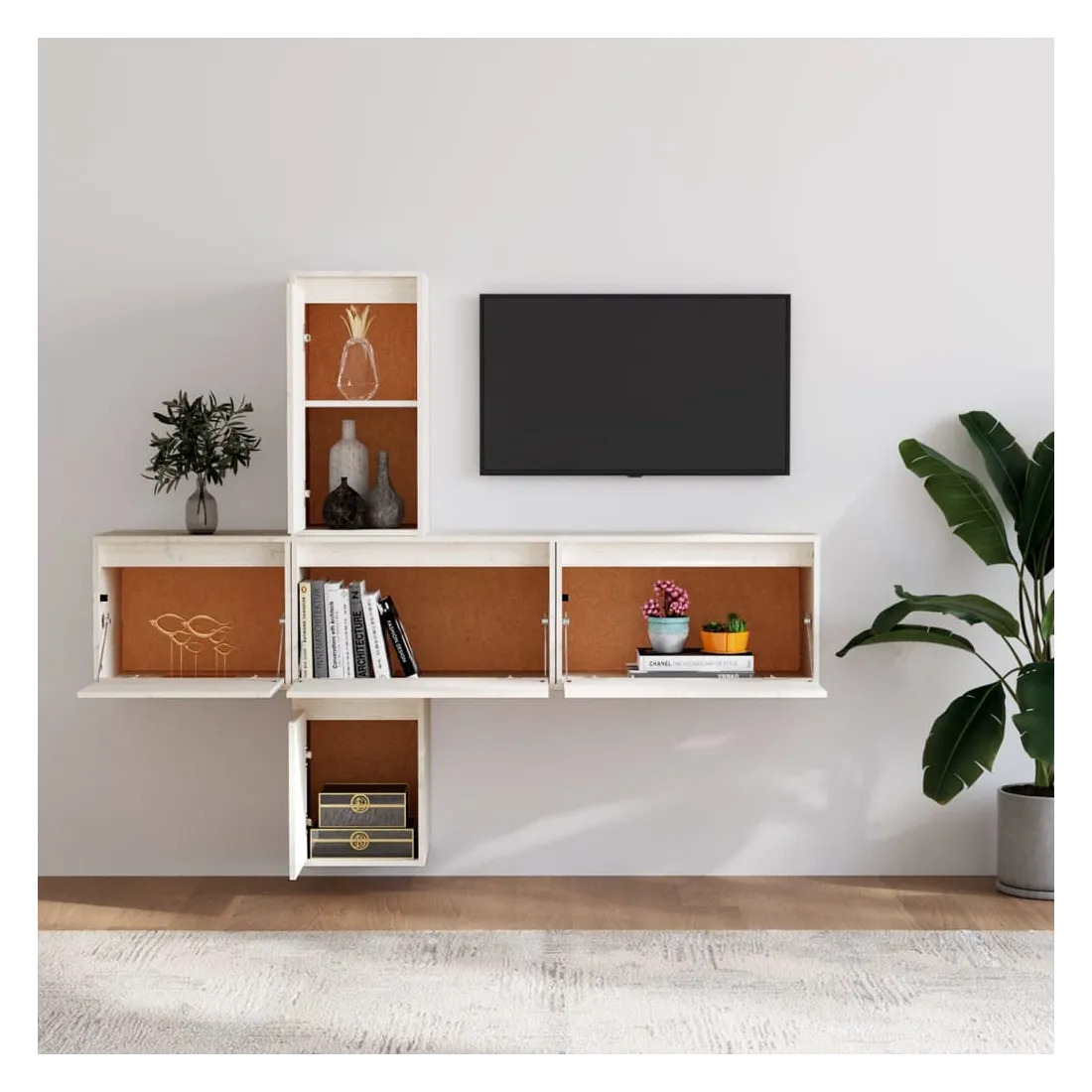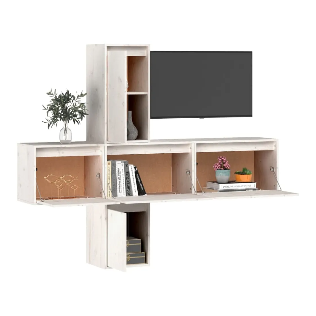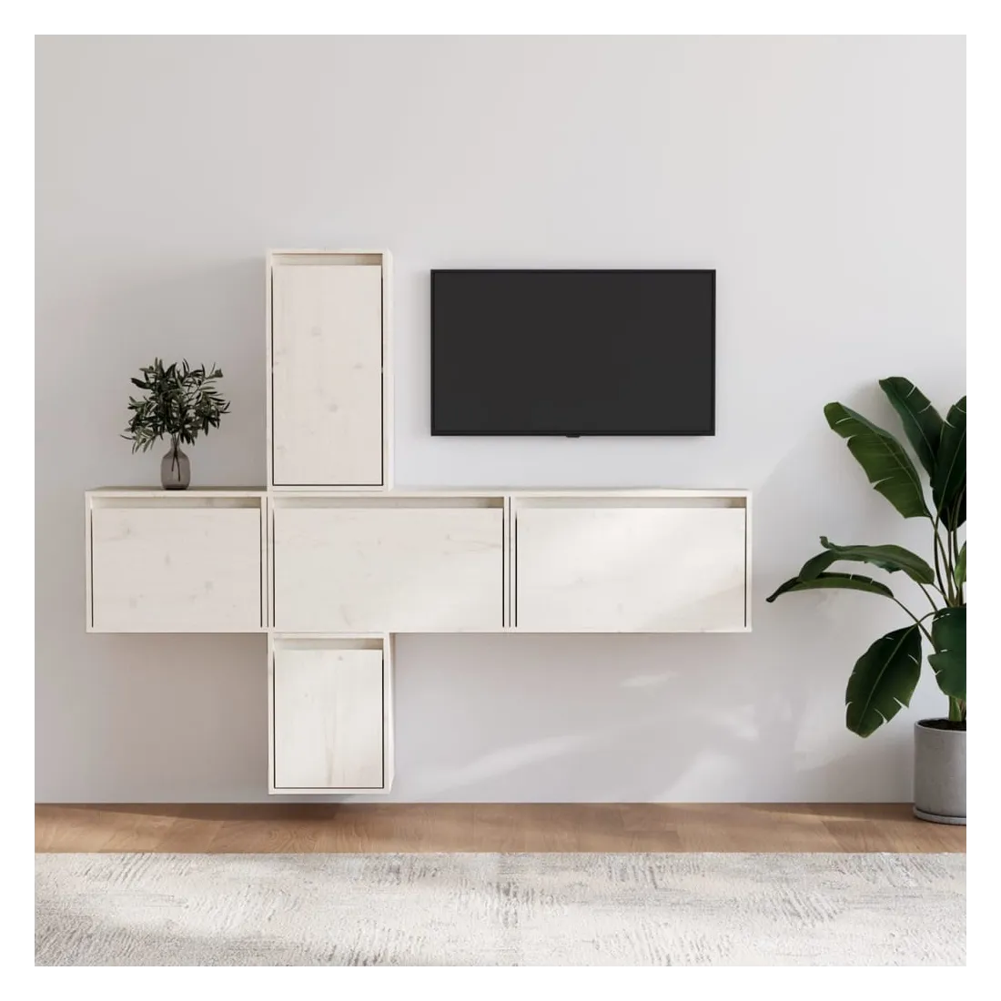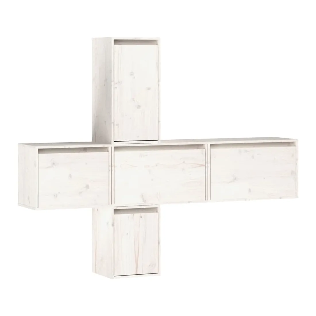 Meubles TV 5 pcs Blanc Bois massif de pin