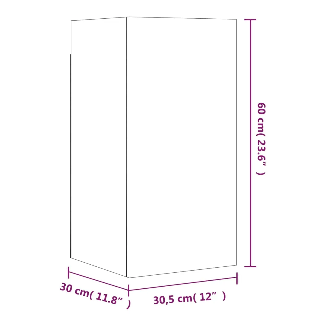 • Dimensions du meuble TV (avec 1 porte) : 30,5 x 30 x 60 cm (l x P x H)