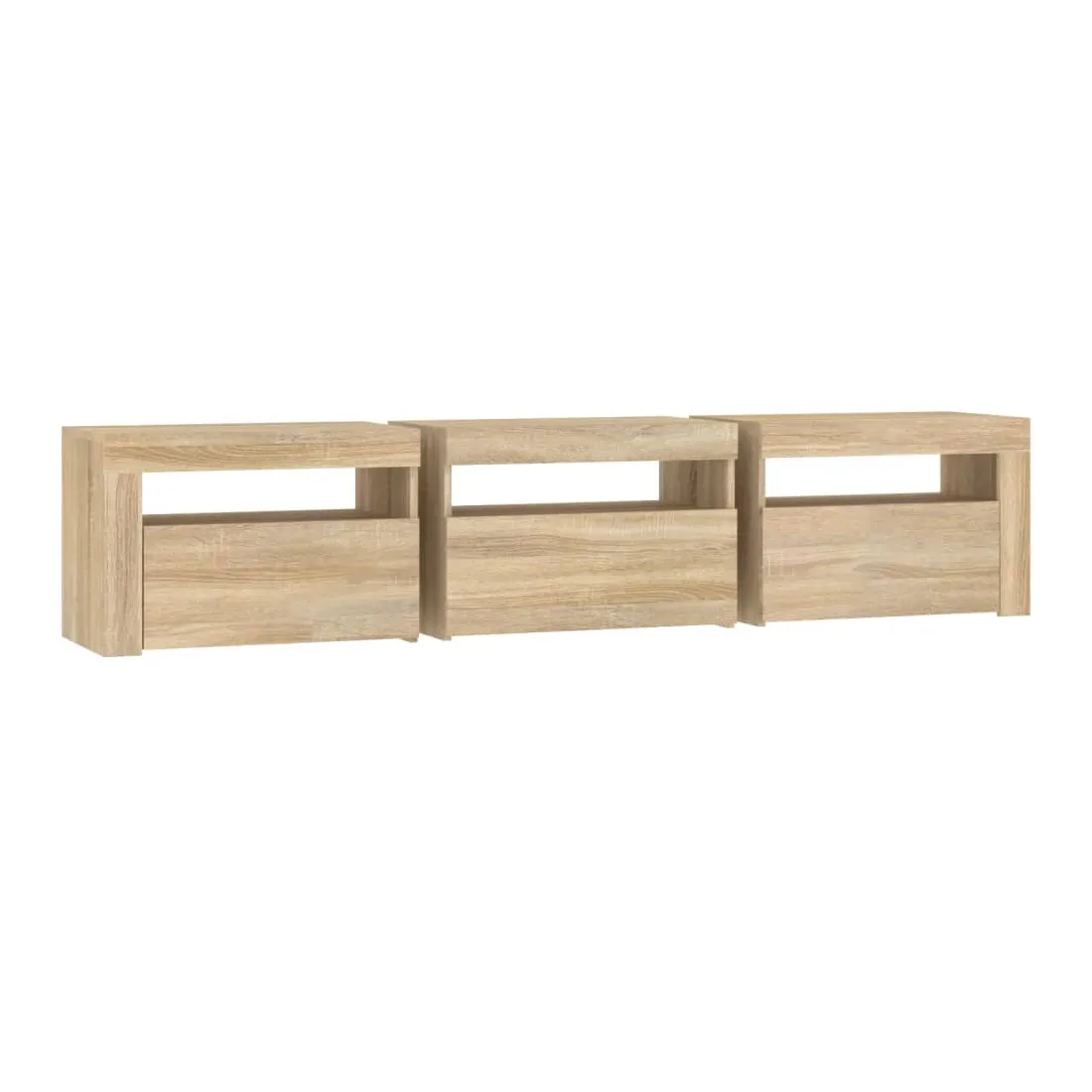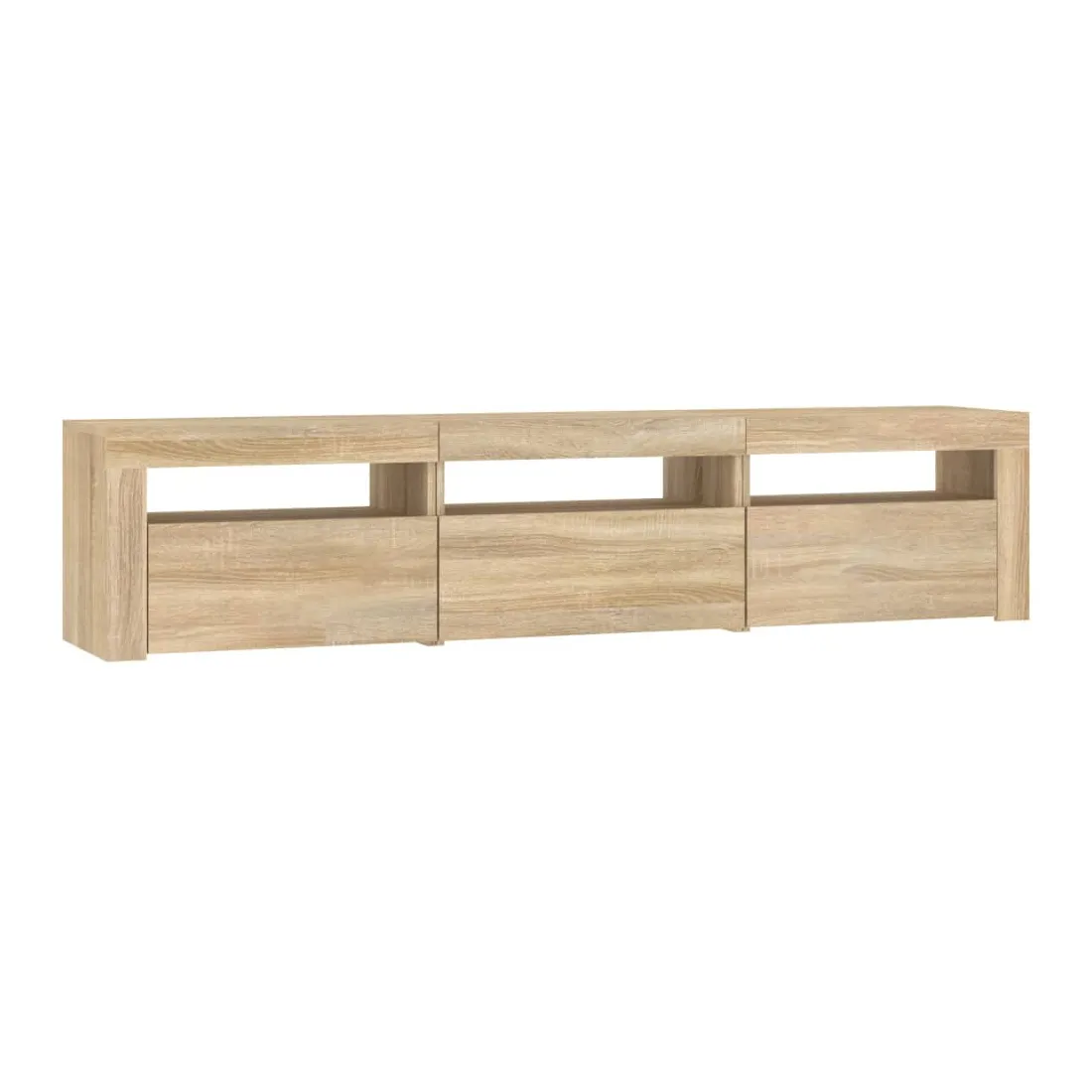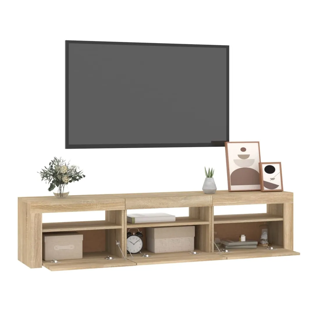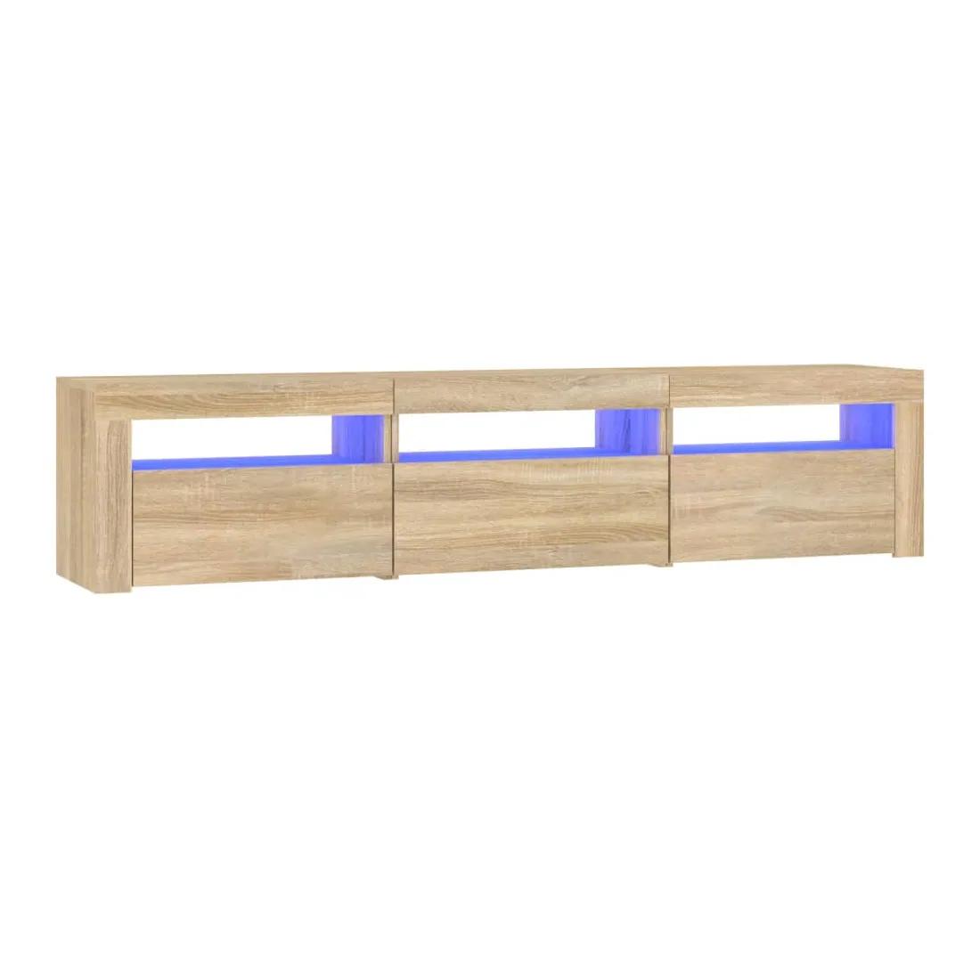 Avec un design à la fois tendance et pratique, ce meuble TV avec éclairage LED deviendra certainement un point central de votre pièce. Matériau pratique : le bois d'ingénierie est d'une qualité exceptionnelle avec une surface lisse et présente également résistance, stabilité et résistance à l'humidité. Lumières LED colorées : le meuble TV est doté de lumières LED RVB, qui ont différents menus pour changer la couleur des lumières et laisser la couleur s'ajuster automatiquement. Les lumières LED soulignent l'aspect moderne et contribuent à la sensation de tendance.Grand espace de rangement : le meuble TV offre un grand espace de rangement pour garder vos magazines, livres, télécommandes et autres petits objets bien organisés et à portée de main.Fonction d'affichage : le dessus robuste du meuble média est idéal pour exposer des objets décoratifs, des cadres photo et des plantes en pot. Remarque :Ce produit est doté d'un connecteur USB, mais la source d'alimentation certifiée de USB 5V n'est pas incluse.Chaque produit est livré avec un manuel de montage dans la boîte pour un montage facile.