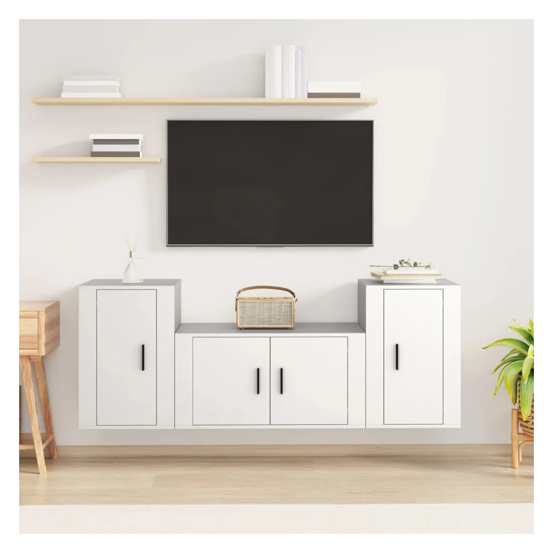 Cet ensemble de meubles TV classique est conçu pour être le point central de votre pièce, avec un design à la fois tendance et pratique. Matériau robuste : le bois d'ingénierie est d'une qualité exceptionnelle avec une surface lisse et présente également résistance, stabilité et résistance à l'humidité.Grand espace de rangement : l'ensemble de meubles TV offre un grand espace de rangement pour garder tous vos magazines, DVD et autres articles bien organisés.Design mural : le meuble TV ne prend pas de place au sol. Vous pouvez l'accrocher au mur facilement. Bon à savoir :Pour faciliter au maximum le montage, chaque produit est livré avec des instructions.Les vis et les chevilles pour l'intérieur du mur ne sont pas incluses. Nous vous conseillons de trouver et d'utiliser des vis et des chevilles adaptées spécifiquement à vos murs. Si vous n'êtes pas sûr, vous pouvez consulter un professionnel. Veuillez lire et suivre chaque étape des instructions.