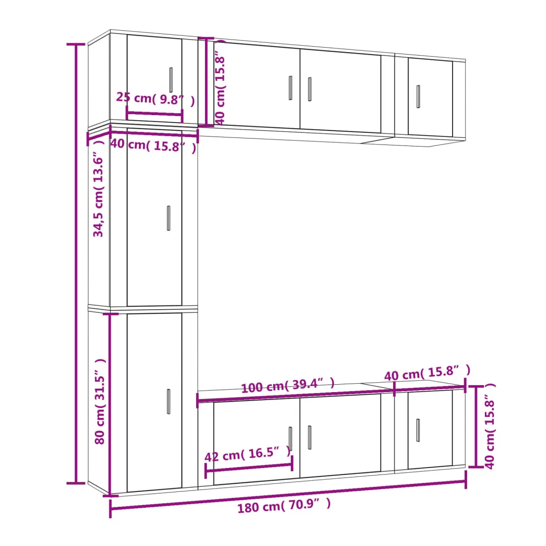 Ensemble de meubles TV 7 pcs Blanc Bois d'ingénierie