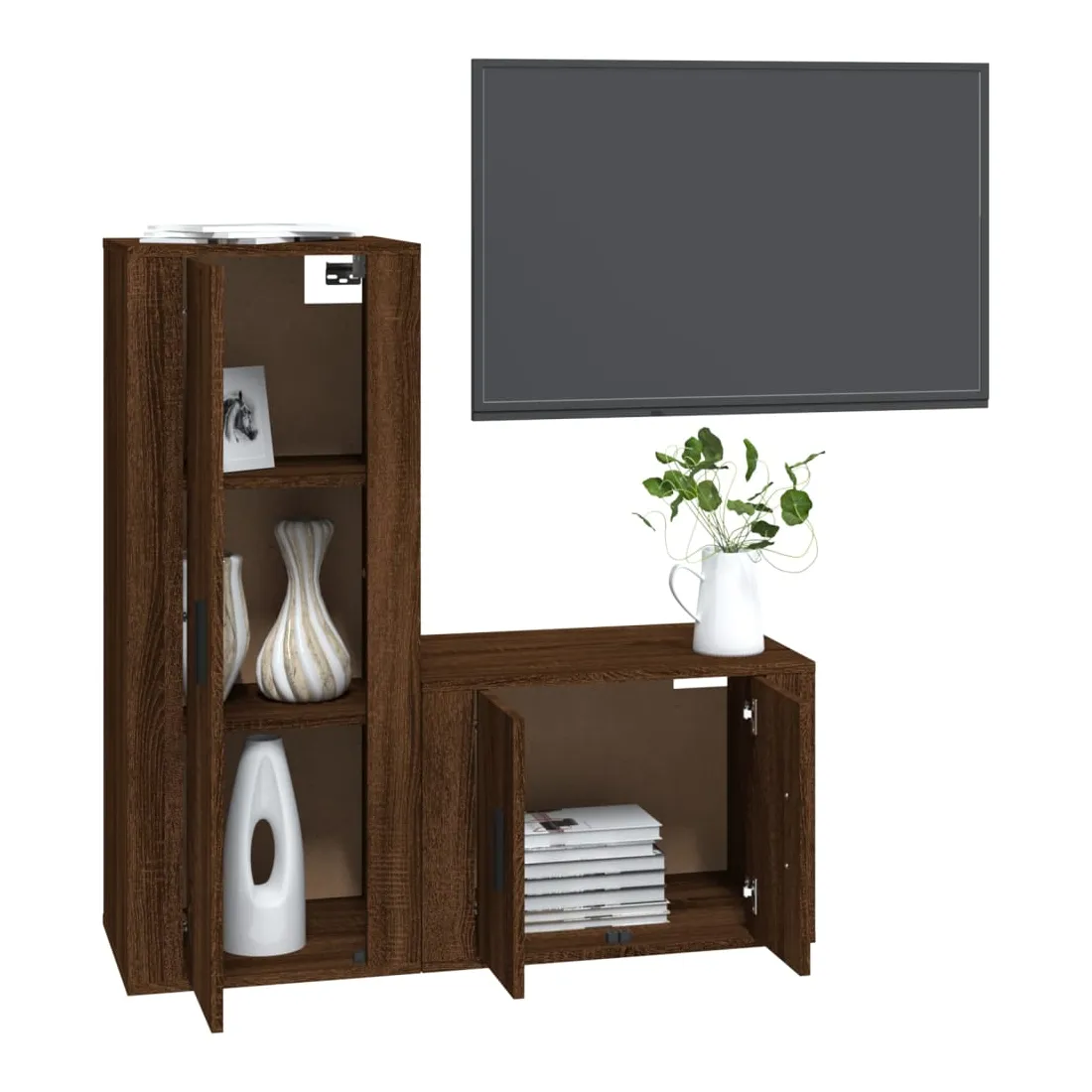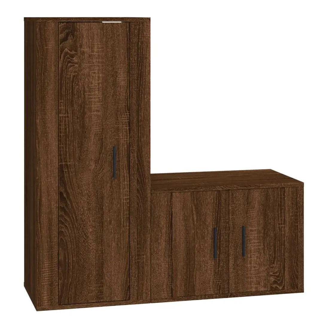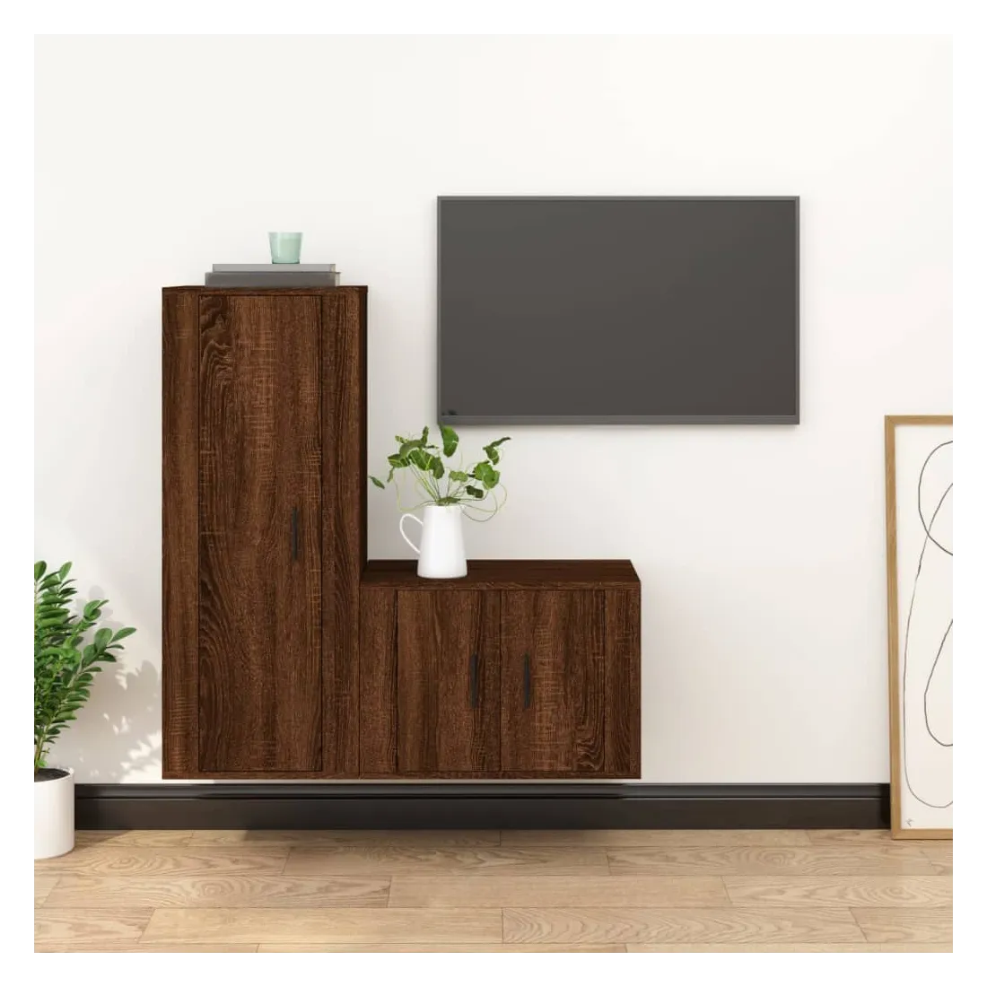 Cet ensemble de meubles TV classique est conçu pour être le point central de votre pièce, avec un design à la fois tendance et pratique. Matériau robuste : le bois d'ingénierie est d'une qualité exceptionnelle avec une surface lisse et présente également résistance, stabilité et résistance à l'humidité. Fabriqués en bois d'ingénierie, ces meubles TV sont faciles à nettoyer.Grand espace de rangement : ces meubles TV offrent un grand espace de rangement pour garder tous vos magazines, DVD et autres articles bien organisés.Fonction murale : l'armoire multimédia ne prend pas de place au sol. Vous pouvez la suspendre facilement au mur.Portes pratique : gardez vos essentiels à l'abri de la poussière en les cachant derrière la porte de l’unité multimédia. Bon à savoir :Pour faciliter au maximum le montage, chaque produit est livré avec des instructions.Les vis et les chevilles pour l'intérieur du mur ne sont pas incluses. Nous vous conseillons de trouver et d'utiliser des vis et des chevilles adaptées spécifiquement à vos murs. Si vous n'êtes pas sûr, vous pouvez consulter un professionnel. Veuillez lire et suivre chaque étape des instructions.