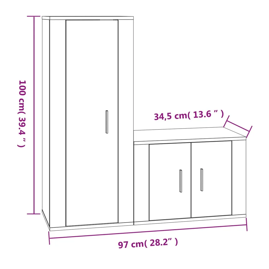 - 1 x meuble TV : 40 x 34,5 x 100 cm (l x P x H)