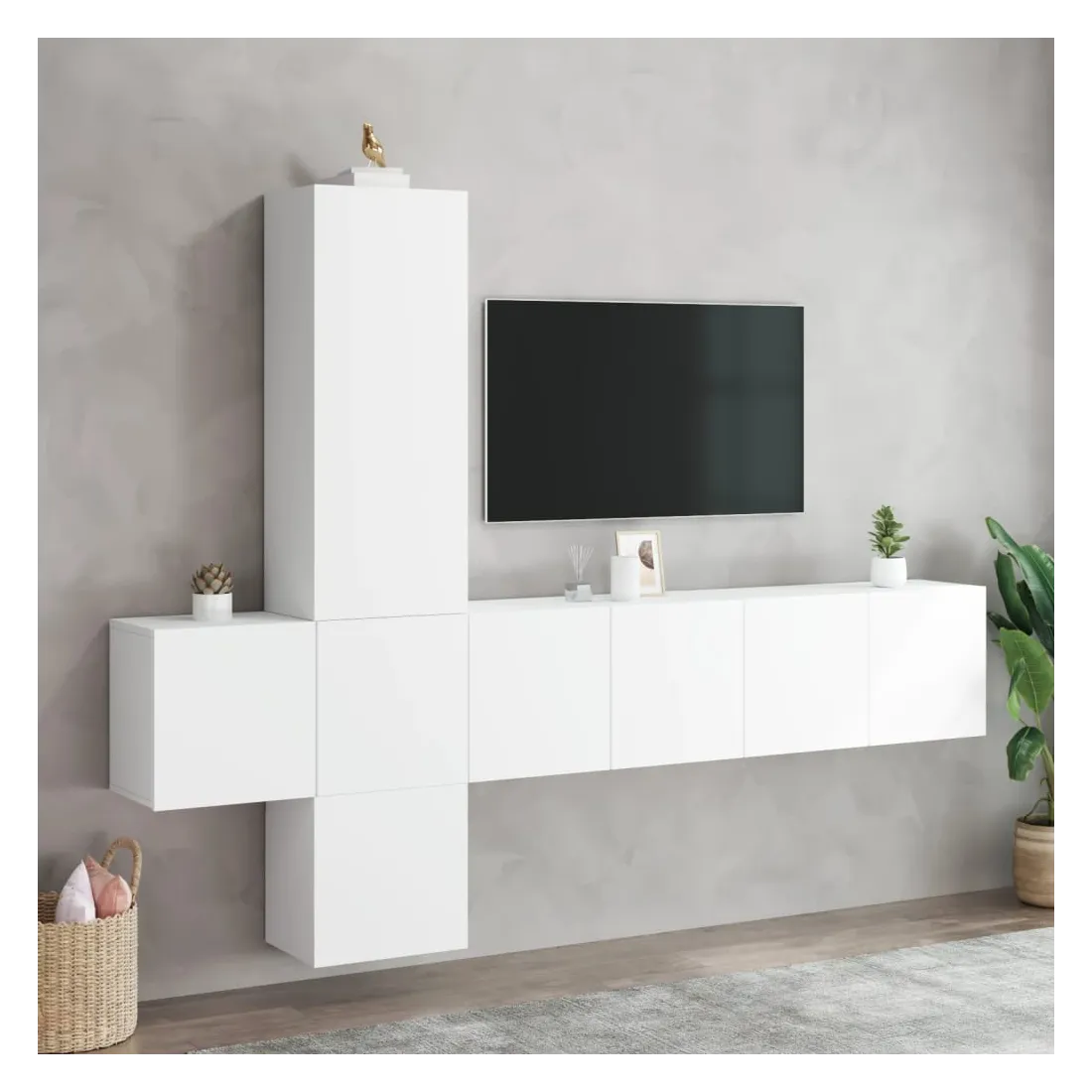 Ces unités murales TV sont la solution parfaite pour votre espace de vie afin de maximiser l'espace et de garder les surfaces au sol sans encombrement. Matériau robuste : le bois d'ingénierie est d'une qualité exceptionnelle avec une surface lisse et présente également résistance, stabilité et résistance à l'humidité.Design mural : le meuble de télévision peut être fixé au mur pour ajouter un espace de stockage supplémentaire. De cette façon, vous pouvez maximiser votre espace au sol et garder la zone propre.Grand espace de rangement : le meuble TV flottant est doté de différentes options de rangement, offrant ainsi un grand espace pour ranger vos objets quotidiens tels que les livres, les DVD, les accessoires multimédias et d'autres articles bien organisés et à portée de main.Design polyvalent : vous pouvez l'utiliser comme meuble TV ou le monter sur le mur du lieu de travail pour un rangement pratique des outils ou d'autres articles divers. En outre, il transforme un mur vide en élément de design. Bon à savoir :Les vis et les chevilles pour l'intérieur du mur ne sont pas incluses. Nous vous conseillons de trouver et d'utiliser des vis et des chevilles adaptées spécifiquement à vos murs. Si vous n'êtes pas sûr, vous pouvez consulter un professionnel. Veuillez lire et suivre chaque étape des instructions.