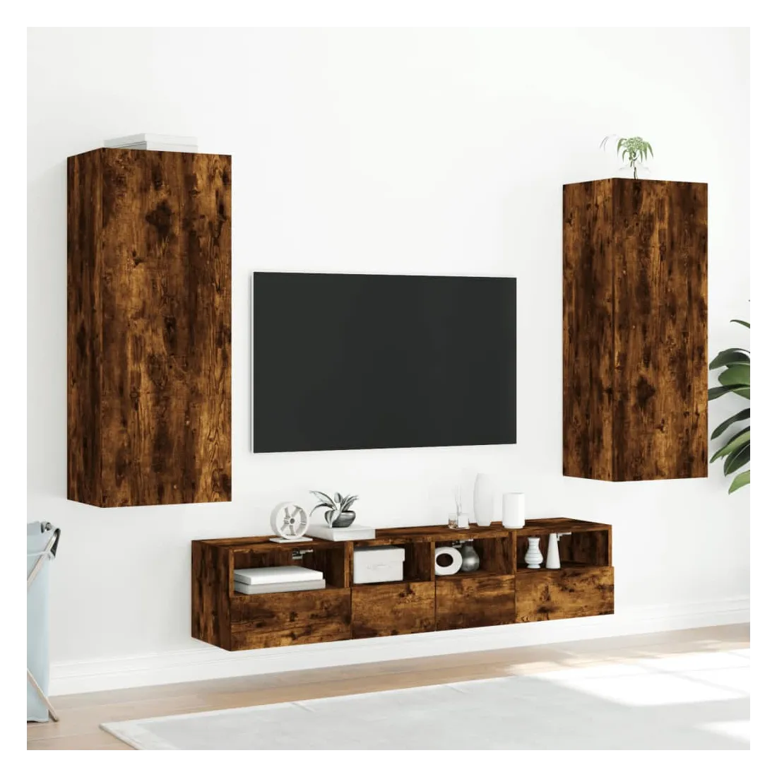 Ces unités murales TV sont la solution parfaite pour votre espace de vie afin de maximiser l'espace et de garder les surfaces au sol sans encombrement. Matériau robuste : le bois d'ingénierie est d'une qualité exceptionnelle avec une surface lisse et présente également résistance, stabilité et résistance à l'humidité.Design mural : le meuble de télévision peut être fixé au mur pour ajouter un espace de stockage supplémentaire. De cette façon, vous pouvez maximiser votre espace au sol et garder la zone propre.Grand espace de rangement : le meuble TV flottant est doté de différentes options de rangement, offrant ainsi un grand espace pour ranger vos objets quotidiens tels que les livres, les DVD, les accessoires multimédias et d'autres articles bien organisés et à portée de main.Design polyvalent : vous pouvez l'utiliser comme meuble TV ou le monter sur le mur du lieu de travail pour un rangement pratique des outils ou d'autres articles divers. De plus, il transforme un mur vide en un élément de décoration. Bon à savoir :Les vis et les chevilles pour l'intérieur du mur ne sont pas incluses. Nous vous conseillons de trouver et d'utiliser des vis et des chevilles adaptées spécifiquement à vos murs. Si vous n'êtes pas sûr, vous pouvez consulter un professionnel. Veuillez lire et suivre chaque étape des instructions.