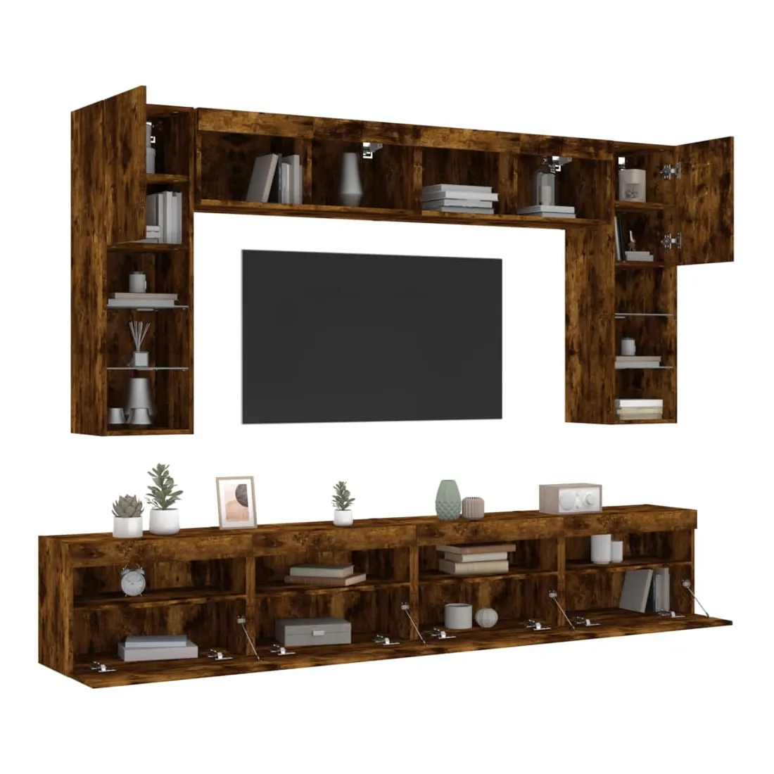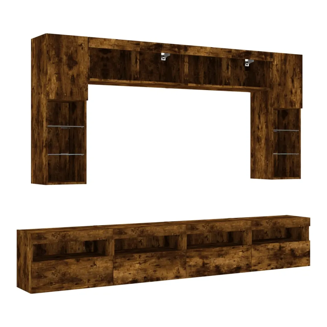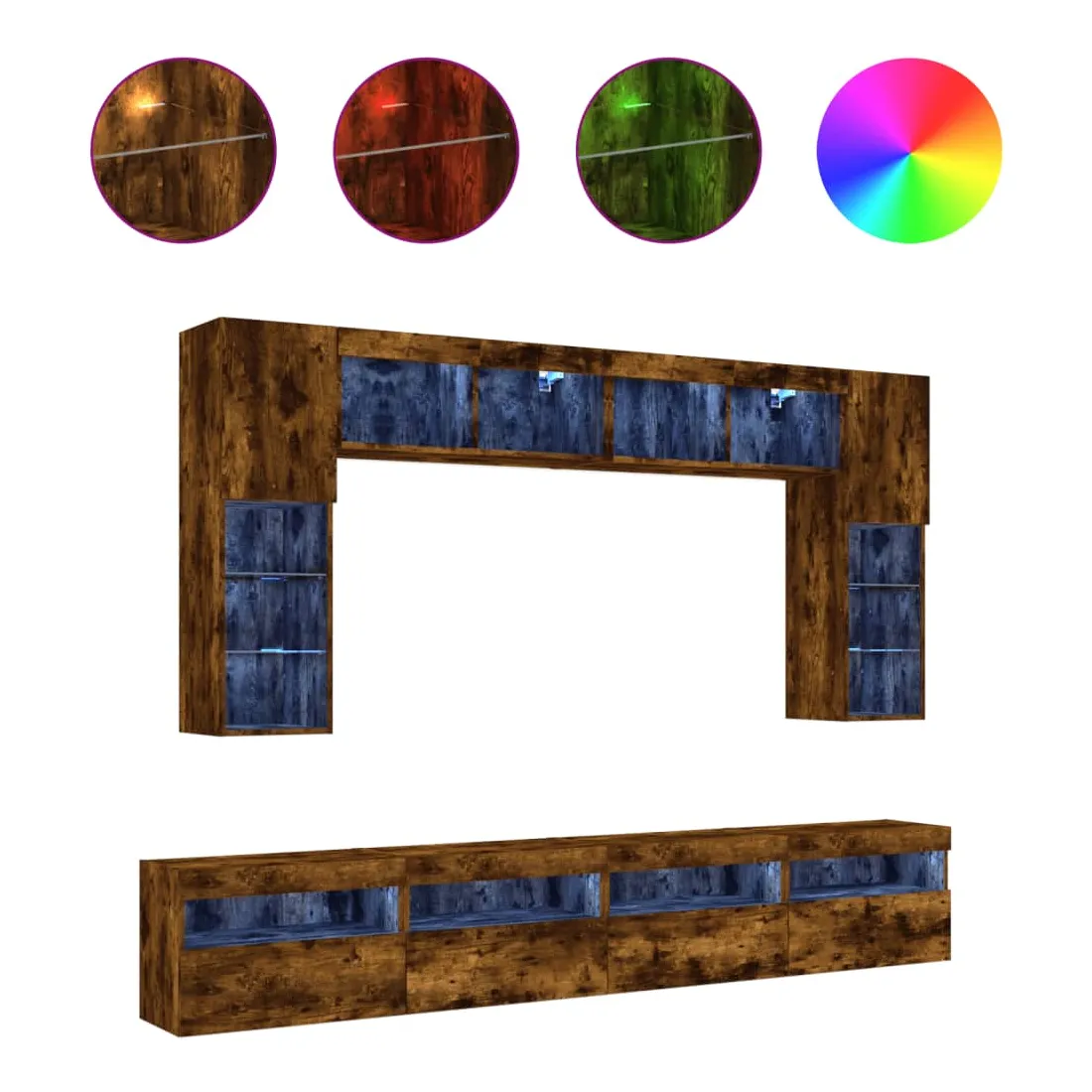 Ensemble de meubles TV muraux 8 pcs et lumières LED chêne fumé