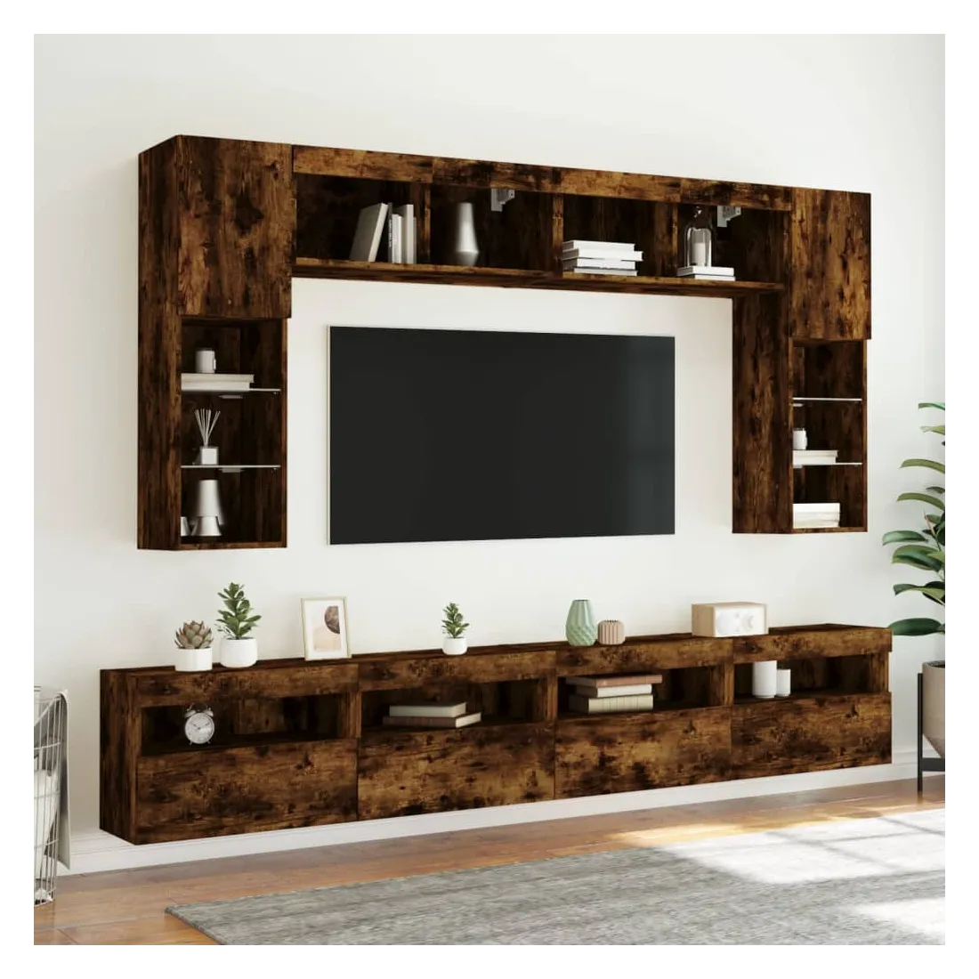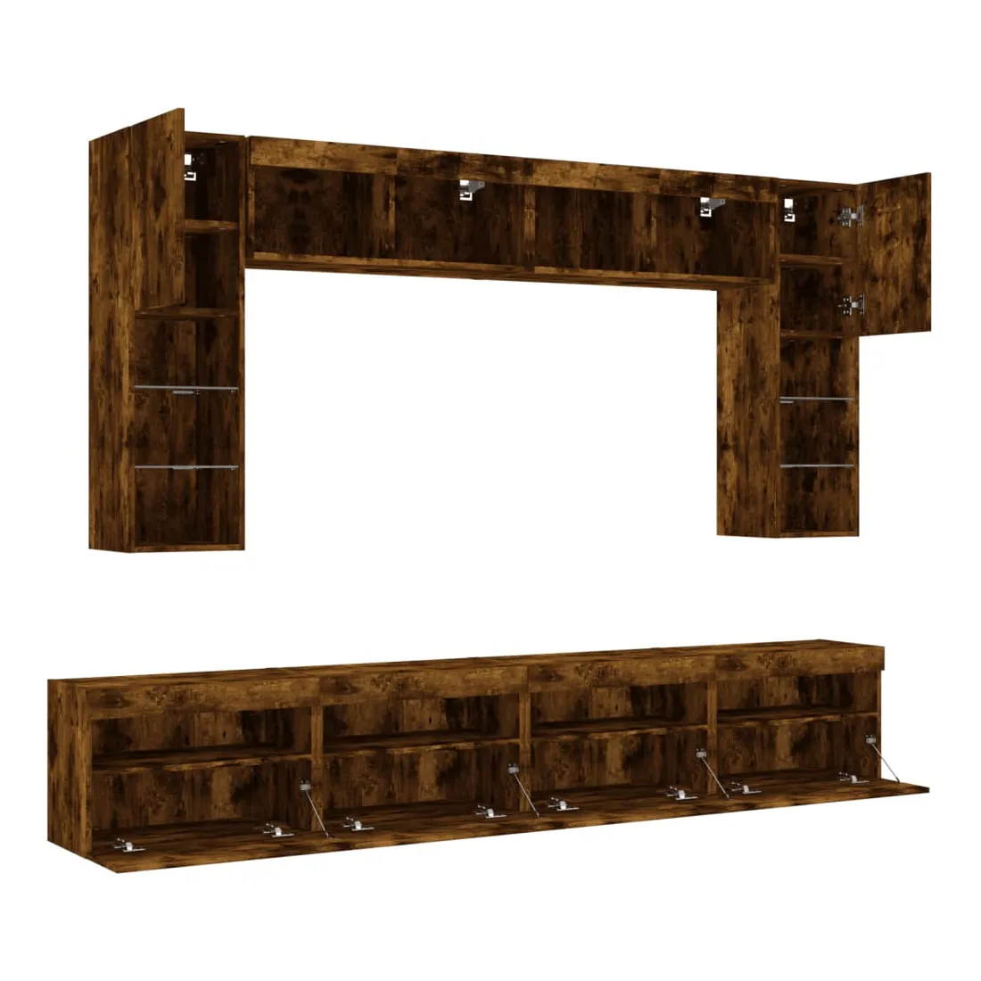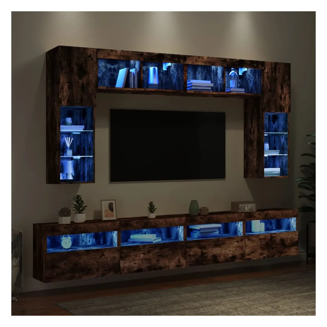Ensemble de meubles TV muraux 8 pcs et lumières LED chêne fumé