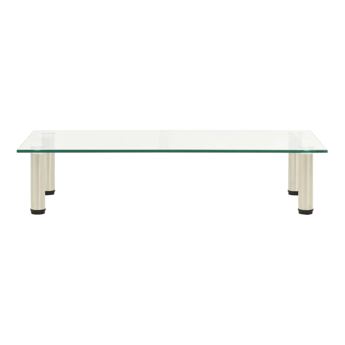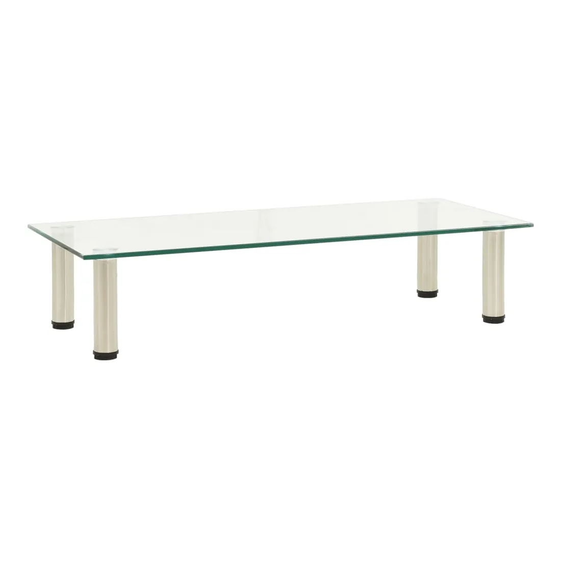 Ce meuble TV contemporain en verre trempé ajoute une touche moderne à votre salon et à votre chambre à coucher. Cette table de télévision est fabriquée en verre trempé épais et en acier inoxydable résistant, ce qui la rend extrêmement solide et sûre. Le dessus de table solide peut être utilisé pour placer la télévision, l'ordinateur portable et d'autres dispositifs multimédias. Vous pouvez également mettre vos boissons, vases et autres petits objets. De plus, la surface lisse est facile à nettoyer avec un simple chiffon humide.