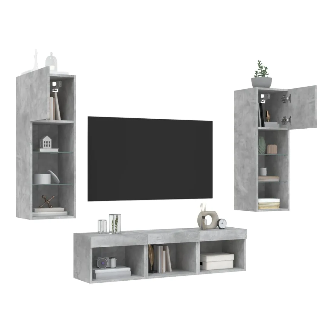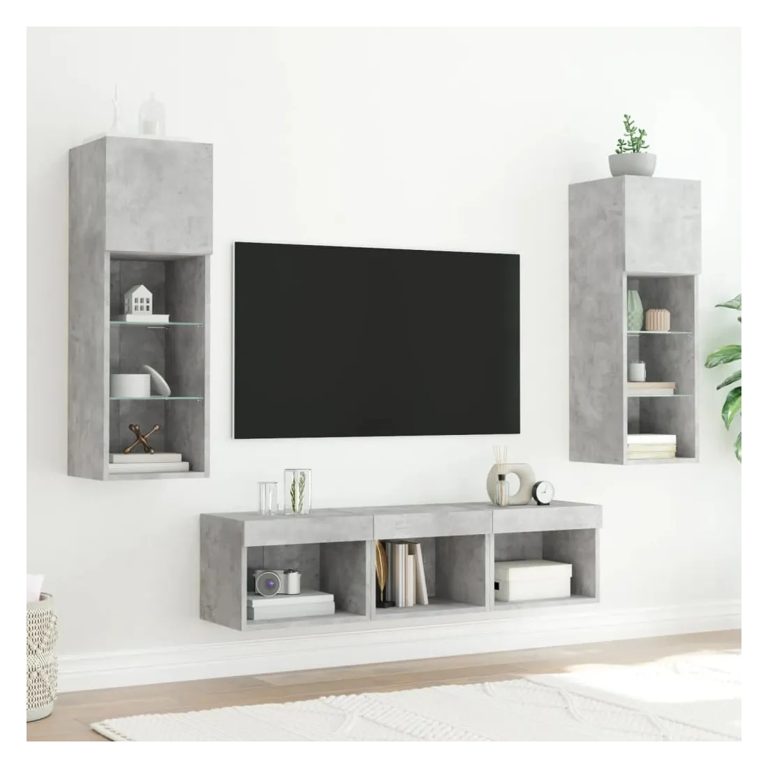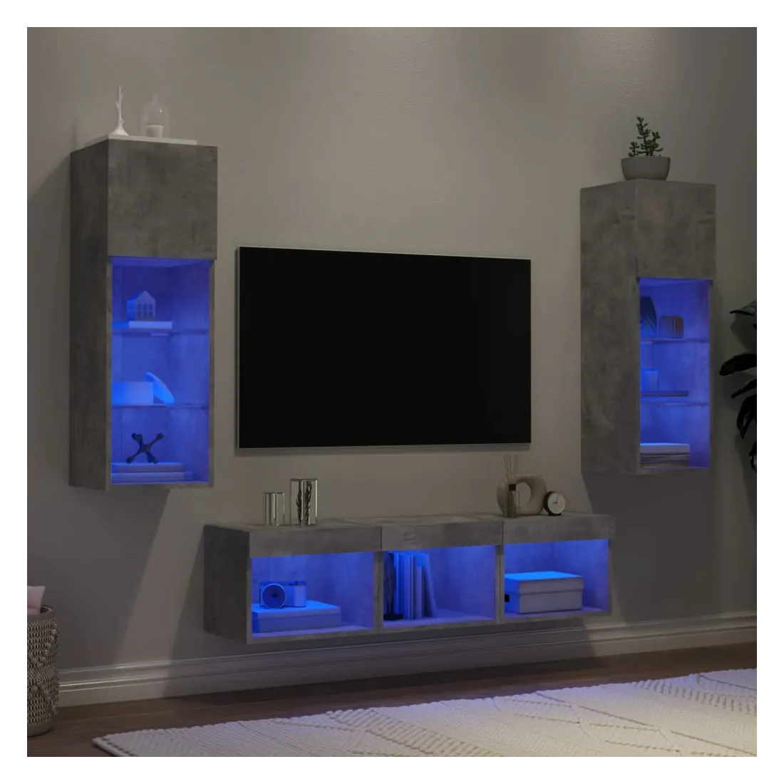 Ces unités murales TV sont la solution parfaite pour votre espace de vie afin de maximiser l'espace et de garder les surfaces au sol sans encombrement. Matériau robuste : le bois d'ingénierie est d'une qualité exceptionnelle avec une surface lisse et présente également résistance, stabilité et résistance à l'humidité.Lumières LED RVB : la unité TV est équipée de lumières LED RVB vibrantes. Avec divers menus personnalisables, vous pouvez changer sans effort la couleur des lumières et même les régler automatiquement. Ces lumières LED renforcent non seulement l'aspect contemporain du meuble TV flottant, mais aussi son attrait pour la mode.Design mural : le meuble de télévision peut être fixé au mur pour ajouter un espace de stockage supplémentaire. De cette façon, vous pouvez maximiser votre espace au sol et garder la zone propre.Grand espace de rangement : le meuble TV flottant est doté de différentes options de rangement, offrant ainsi un grand espace pour ranger vos objets quotidiens tels que les livres, les DVD, les accessoires multimédias et d'autres articles bien organisés et à portée de main.Design polyvalent : vous pouvez l'utiliser comme meuble TV ou le monter sur le mur du lieu de travail pour un rangement pratique des outils ou d'autres articles divers. En outre, il transforme un mur vide en élément de design. Bon à savoir :Les vis et les chevilles pour l'intérieur du mur ne sont pas incluses. Nous vous conseillons de trouver et d'utiliser des vis et des chevilles adaptées spécifiquement à vos murs. Si vous n'êtes pas sûr, vous pouvez consulter un professionnel. Veuillez lire et suivre chaque étape des instructions.Ce produit est doté d'un connecteur USB qui nécessite une source d'alimentation USB de 5V certifiée (non incluse).