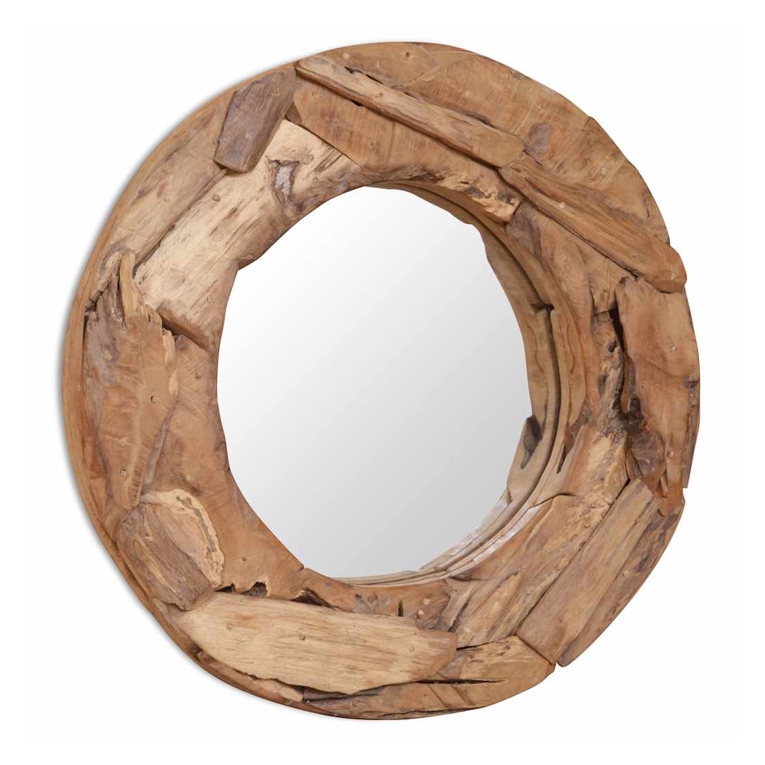 Notre miroir en teck est plus qu'un objet pratique quotidien; c'est aussi une décoration attrayante pour votre maison. Le miroir est fait de teck massif dans un arrangement irrégulier et aléatoire, ce qui ajoute au style rustique du miroir. Il s'assortira bien à n'importe quelle pièce de la maison et peut également être utilisé dans la salle de bain. Remarque importante : la couleur et le motif du bois peuvent varier d'une pièce à l'autre, rendant chacun de nos miroirs uniques. La livraison est aléatoire, ce qui garantit l'exclusivité et l'individualité de votre produit.