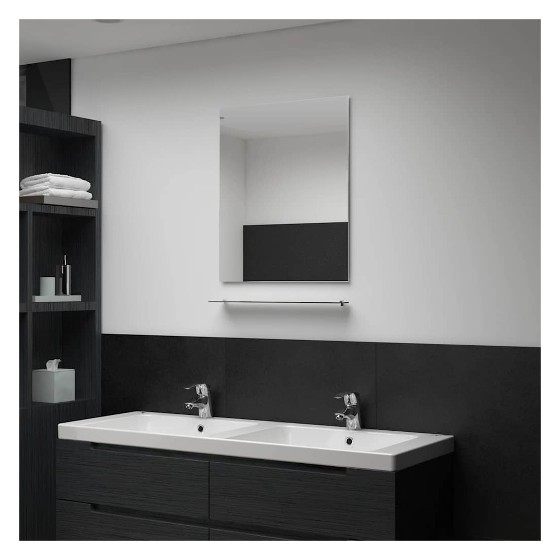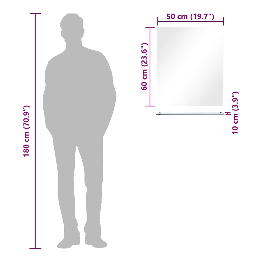 Notre miroir mural avec étagère sera un supplément pratique et décoratif à votre salle de bain, salon ou chambre à coucher. Le mobilier de salle de bain présente un style minimaliste et une étagère en miroir pratique pour afficher des objets décoratifs ou les essentiels du dressing. De conception contemporaine, notre miroir de salle de bain avec étagère est fabriqué en verre trempé, ce qui assure sa durabilité. Le miroir peut être facilement monté sur le mur.
