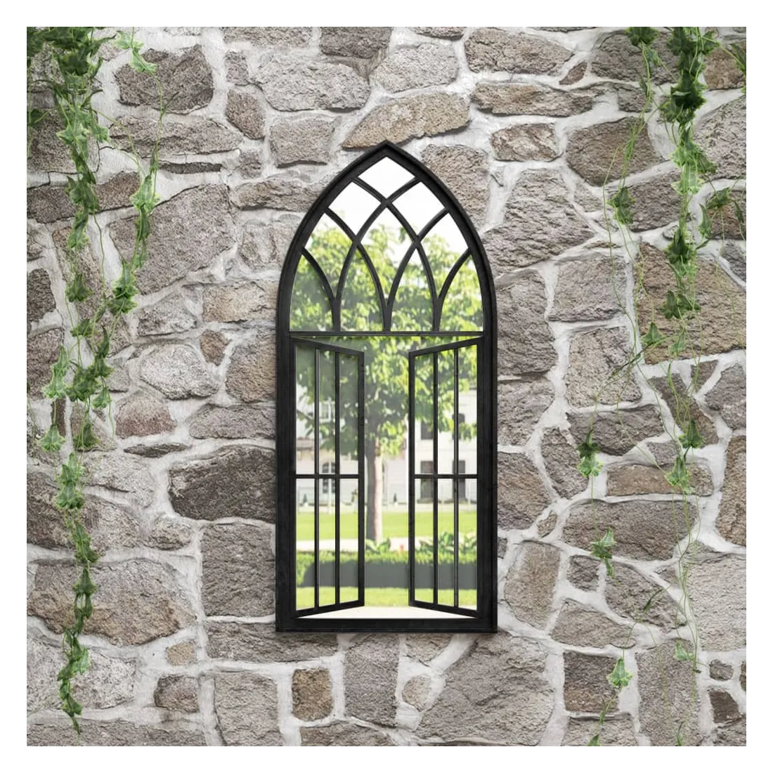 Le miroir de jardin sera un supplément original et attrayant à l'espace extérieur. Le miroir est fait de fer durable avec un effet rouille, ce qui donnera un aspect antique. Il peut être utilisé pour mettre en valeur un élément du jardin en le reflétant dans le miroir, ou l'utiliser pour dévier la lumière dans un coin sombre. Un miroir dans le jardin est une façon créative d'améliorer l'apparence et de rendre le jardin plus grand. Grâce au trou pré-percé sur son dessus, le miroir décoratif peut être facilement monté sur le mur.