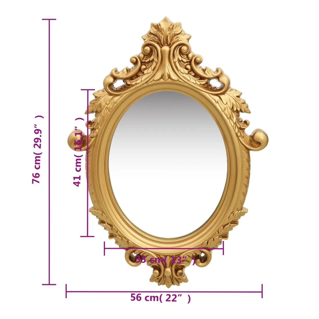 Ce miroir mural magnifique avec son cadre ornementé crée une atmosphère baroque dans votre dressing. Ce miroir à l'aspect ancien présente un cadre en PU robuste qui est habilement fabriqué pour arborer des motifs de style château. De plus, le bord plat donne au miroir un aspect unique. Le miroir peut être prêt à être fixé au mur grâce au crochet déjà installé sur le panneau arrière.