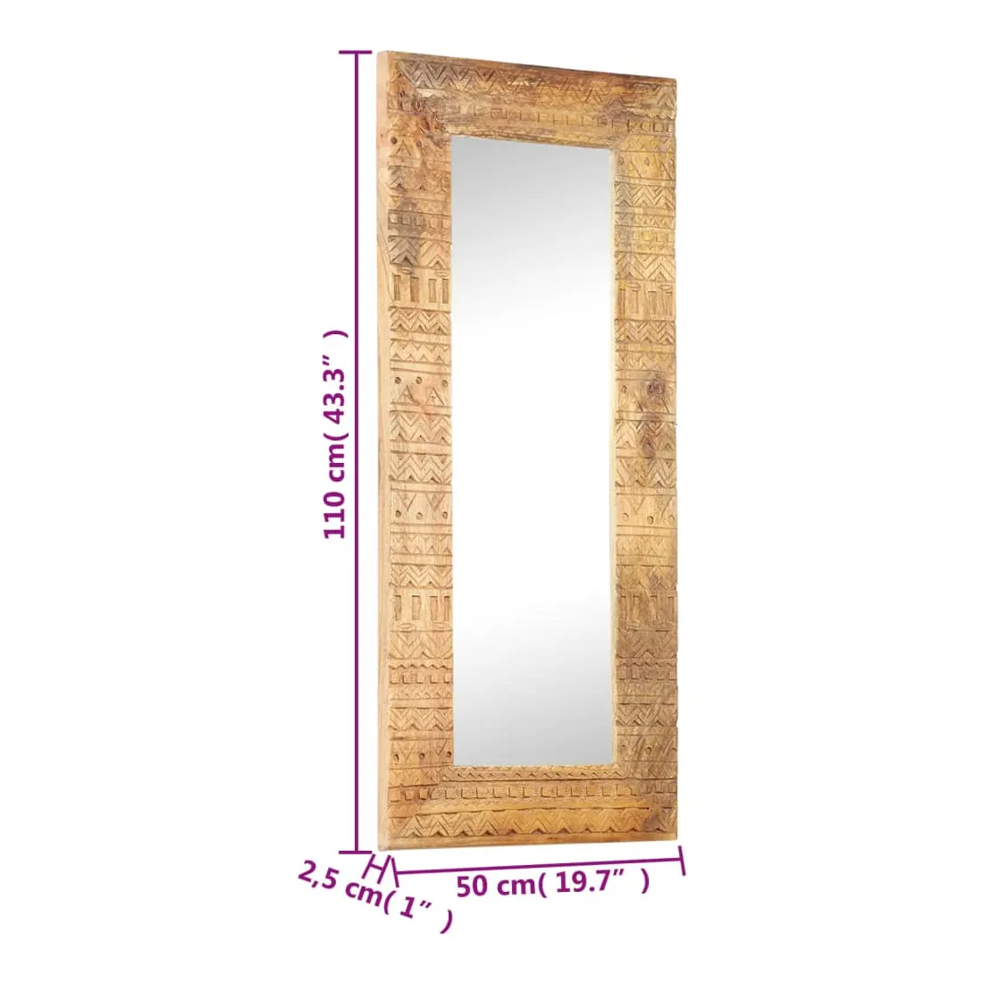 Miroir sculpté à la main 110x50x2,5 cm bois de manguier solide