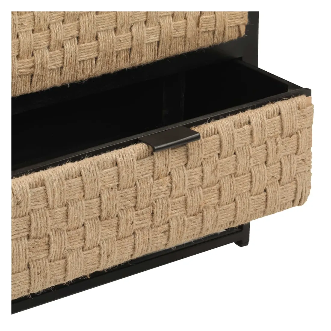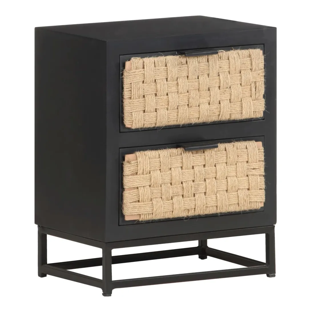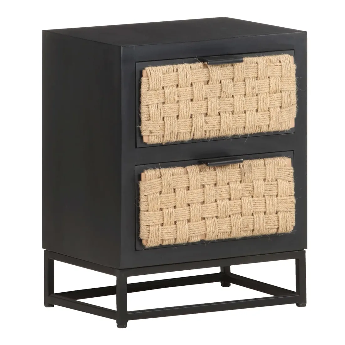 - Matériau : bois de manguier massif avec finition noire, fer avec finition enduite de poudre noire, jute