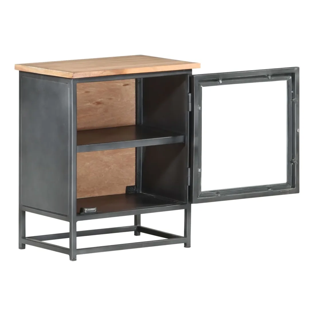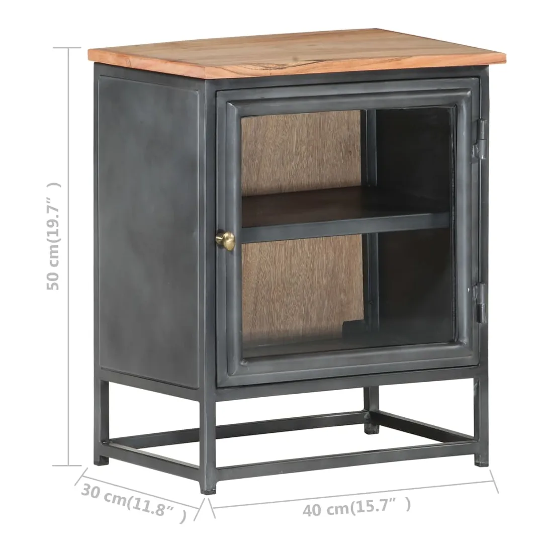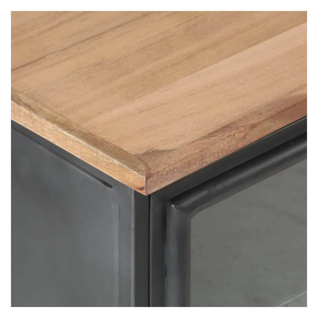- Matériau : bois d'acacia massif, verre, acier, fer