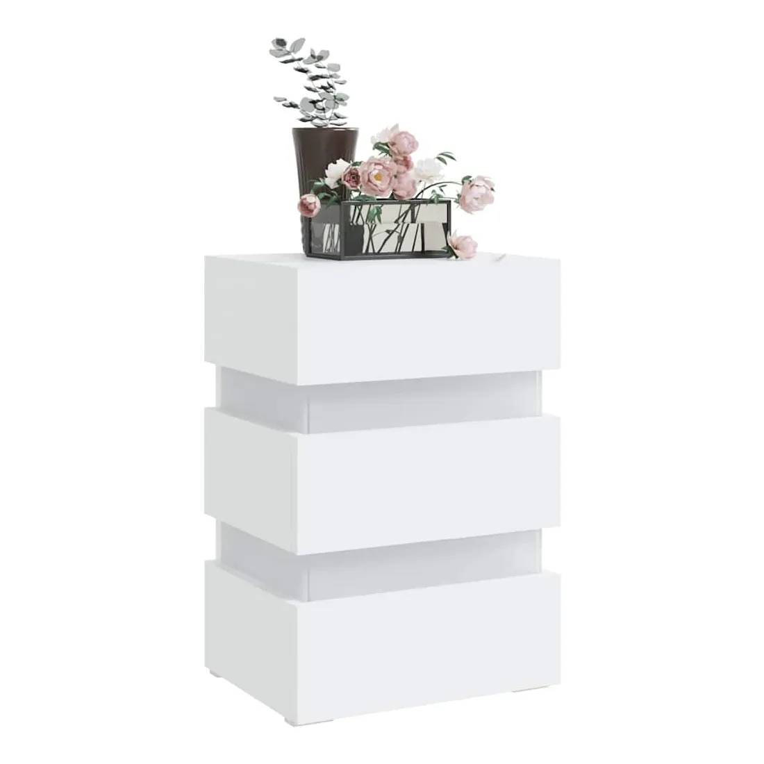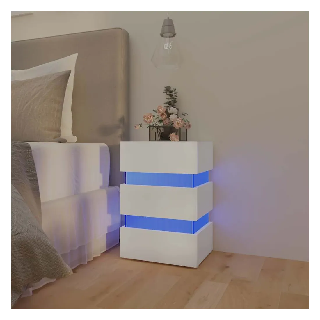 Vous en avez assez de tâtonner dans le noir à la recherche d'un interrupteur au milieu de la nuit ? Avec cette table de chevet à LED, votre problème est résolu ! Fabriquée en bois d'ingénierie de qualité, la table de chevet est stable et facile à nettoyer avec un chiffon humide. Cette armoire de lit offre un grand espace de rangement pour garder vos magazines, livres, télécommandes et autres petits objets bien organisés et à portée de main. De plus, vous pouvez ajouter une touche de modernité supplémentaire grâce à la lumière LED qui est également incluse. Cette table de chevet a tout ce que vous recherchez ! Remarque : ce produit est doté d'un connecteur USB, mais la source d'alimentation certifiée de USB 5V n'est pas incluse.