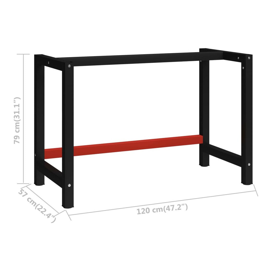 Cadre de banc de travail Métal 120x57x79 cm Noir et rouge