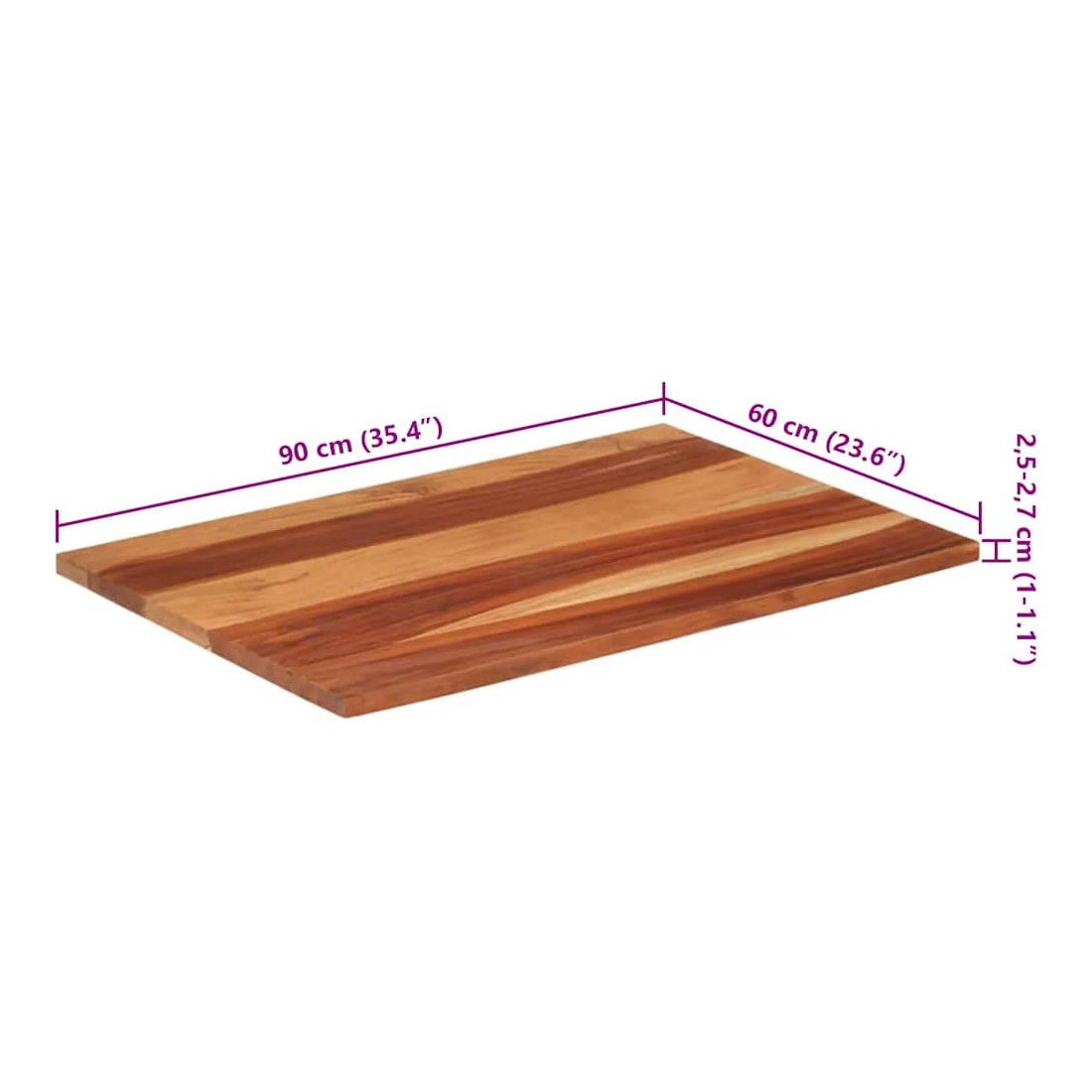 Dessus de table bois massif d'acacia 25-27 mm 60x90 cm