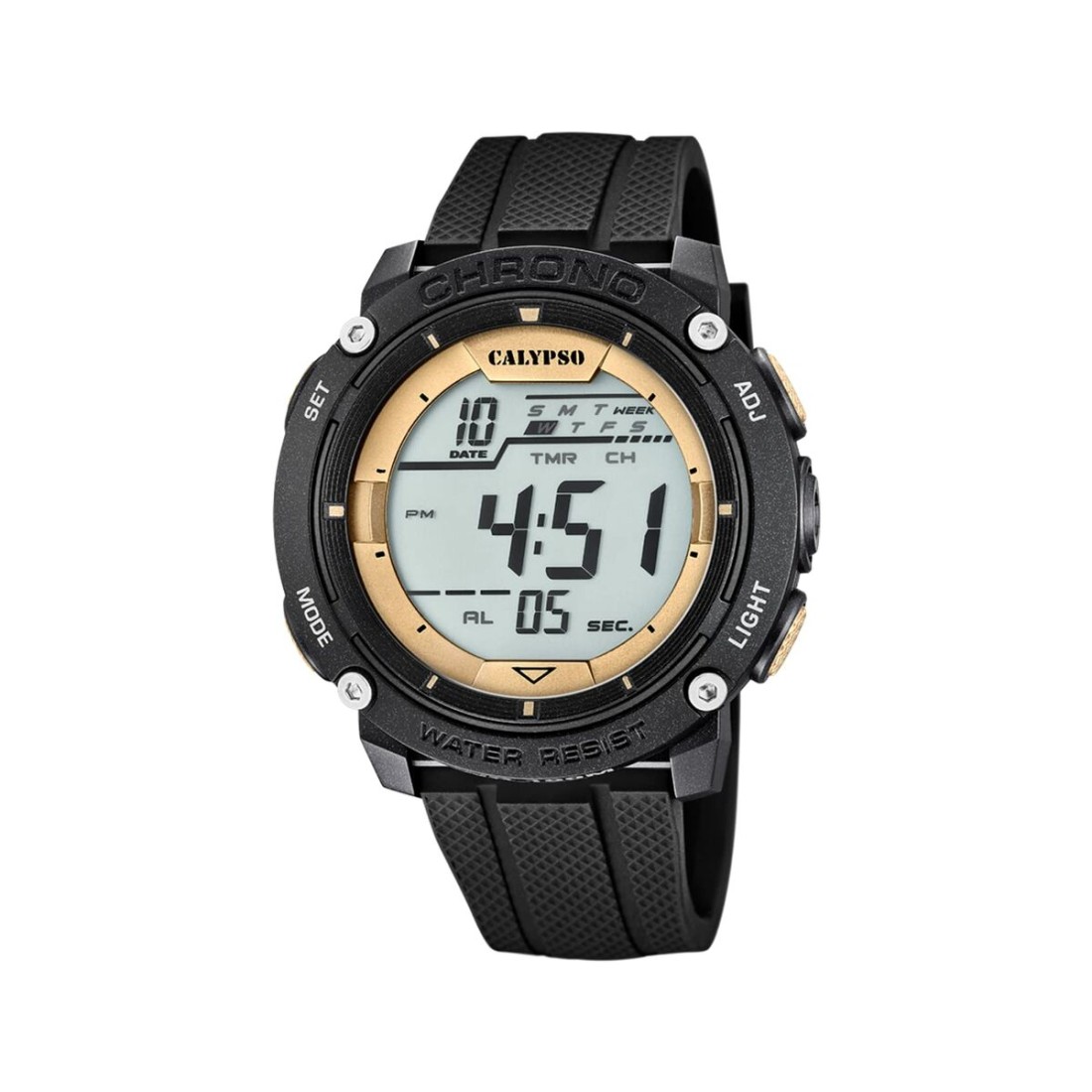 De Calypso polshorloge voor heren is een praktische en functionele keuze voor wie op zoek is naar een robuust en veelzijdig accessoire. Het valt op door de zwarte kleur, die een sobere stijl biedt en gemakkelijk te combineren is voor diverse gelegenheden, van dagelijks gebruik tot informele settings. De rubberen band zorgt voor duurzaamheid en comfort, ideaal voor langdurig dragen met weerstand tegen zweet en omgevingsinvloeden. Het gesp-sluitingssysteem biedt veiligheid en een betrouwbare pasvorm, waardoor het horloge nauw aansluit op de pols. Hoewel het voornamelijk voor heren is ontworpen, heeft dit horloge een unisex karakter, geschikt voor iedereen die een eenvoudige en stevige uitstraling waardeert. De combinatie van deze elementen maakt de Calypso een praktisch horloge met een klassiek ontwerp, vervaardigd uit materialen die dagelijks gebruik weerstaan zonder functionaliteit of stijl te verliezen. Dit model is een uitgebalanceerde keuze voor wie een comfortabel, functioneel horloge met een tijdloze uitstraling binnen het herenassortiment zoekt.