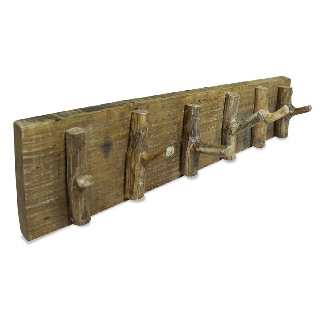 Ce porte-manteau en bois rustique sera un accessoire pratique et décoratif pour votre maison. Le porte-manteau est en bois de récupération massif, qui a les caractéristiques de différents bois comme l'acajou, le teck, le bois dur, le bois du manguier, l'acacia, etc. Vous pouvez trouver des cavités laissées par des clous, des vis ou des boulons avec d'autres imperfections, soulignant l'authenticité du matériau. Ces imperfections révèlent une histoire riche et ne sont jamais réalisées intentionnellement. Le bois provient d'arbres tombés naturellement, de bateaux en bois, de maisons en bois, etc. Chaque pièce de ce meuble est unique et légèrement différente de la suivante. Les signes d'usure et l'artisanat de ce porte-manteau entièrement fait à la main donnent à chaque pièce un look uniqu