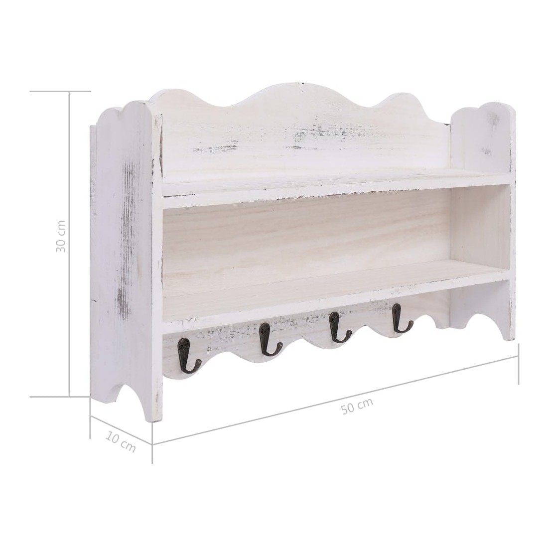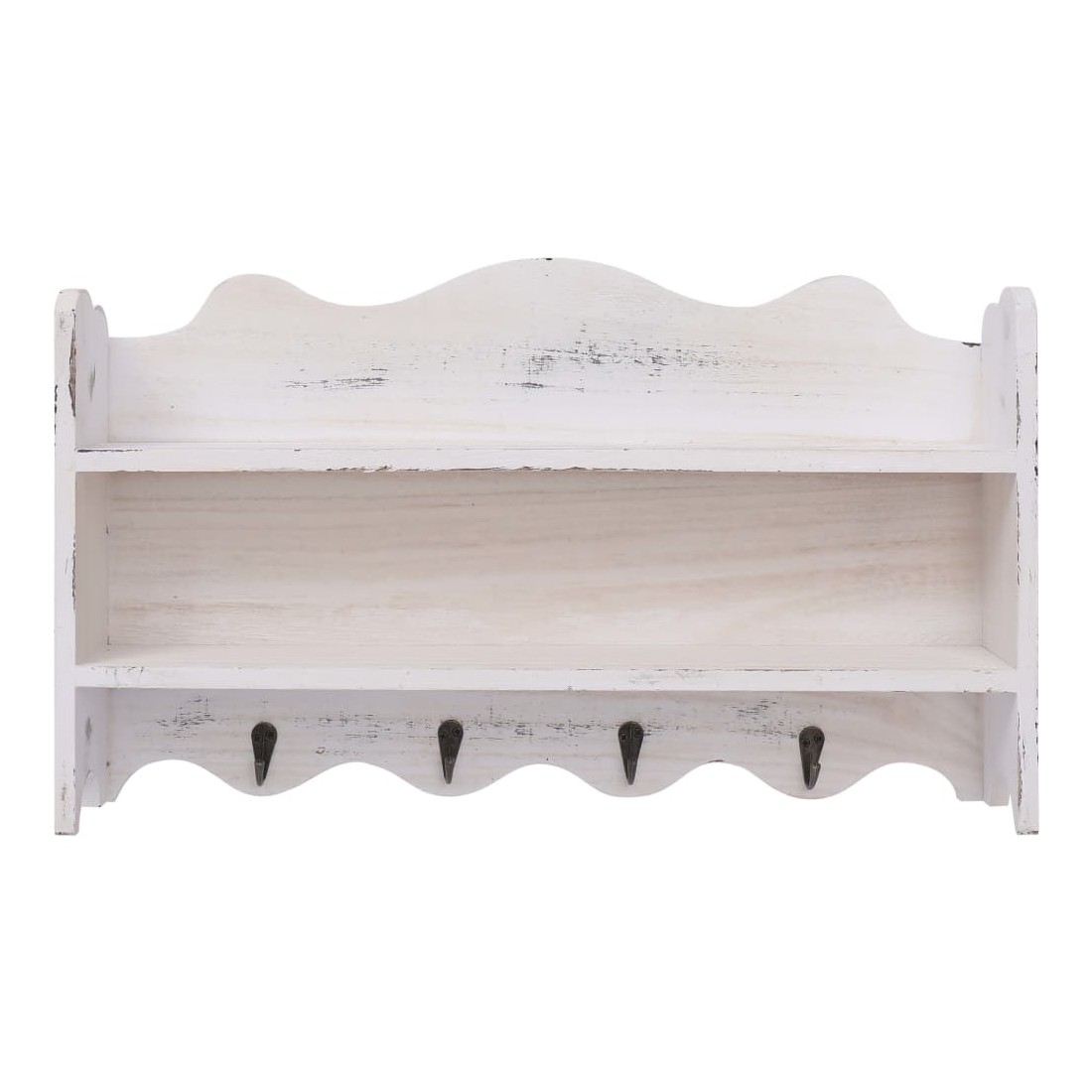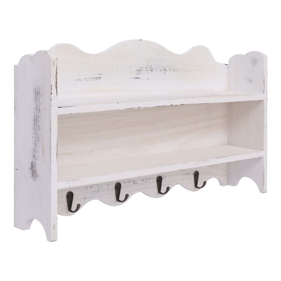 Fatigué de jeter le manteau sur des chaises ? Perdre vos clés ? Ou mettre le courrier important dans des tiroirs aléatoires, pour ne plus jamais être revu ? Avec 2 étagères et 4 crochets, ce portemanteau mural en bois vous aidera à garder votre maison en ordre. Avec un système de montage invisible, ce porte-manteau peut être monté facilement sur n'importe quel mur. Fait de bois de qualité, il est résistant à l'usure, durable et résistant aux taches. De plus, le portemanteau est équipé de 2 étagères pour ranger livres, téléphones, objets de collection, ornements, etc., ainsi que de 4 patères pour suspendre sacs, manteaux, parapluies, pendentifs, clés, etc., ce qui peut considérablement économiser votre espace. Avec un design simple et classique, ce portemanteau mural s’agencera parfaitement à toute entrée, couloir ou pièce dans laquelle vous aurez besoin d’un espace de stockage supplémentaire.