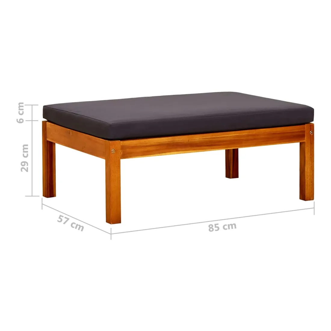 Ces repose-pieds de jardin en bois, qui se distinguent par leur design à lattes, sont idéaux pour les soirées cinéma en famille ou les jeux vidéo, et peuvent également être utilisés pour profiter du temps sur la terrasse. Il est fabriqué en bois d'acacia massif, ce qui le rend stable et durable. Grâce à sa surface à finition à l'huile, il est facile à nettoyer avec un chiffon humide. De plus, vous pouvez le combiner avec d'autres segments comme le canapé central et le canapé d’angle pour créer vos propres configurations d'ensemble de salon de jardin ! Ce coussin est un choix parfait pour vous permettre de vous détendre et de profiter de vos loisirs dans le plus grand confort. Remarque : afin de prolonger la durée de vie de vos meubles d'extérieur, nous vous recommandons de les nettoyer régulièrement et de ne pas les laisser à l'extérieur sans protection inutilement.Nettoyage : Utiliser une solution savonneuse douce.Stockage : si possible, stockez dans un endroit frais et sec à l'intérieur. Si le produit est stocké à l'extérieur, protégez-le avec une housse imperméable. Essuyez et séchez l'excès d'eau ou de neige des surfaces planes après la pluie ou une chute de neige. Permettez une circulation d'air suffisante afin d'éviter les dommages liés à l'humidité.