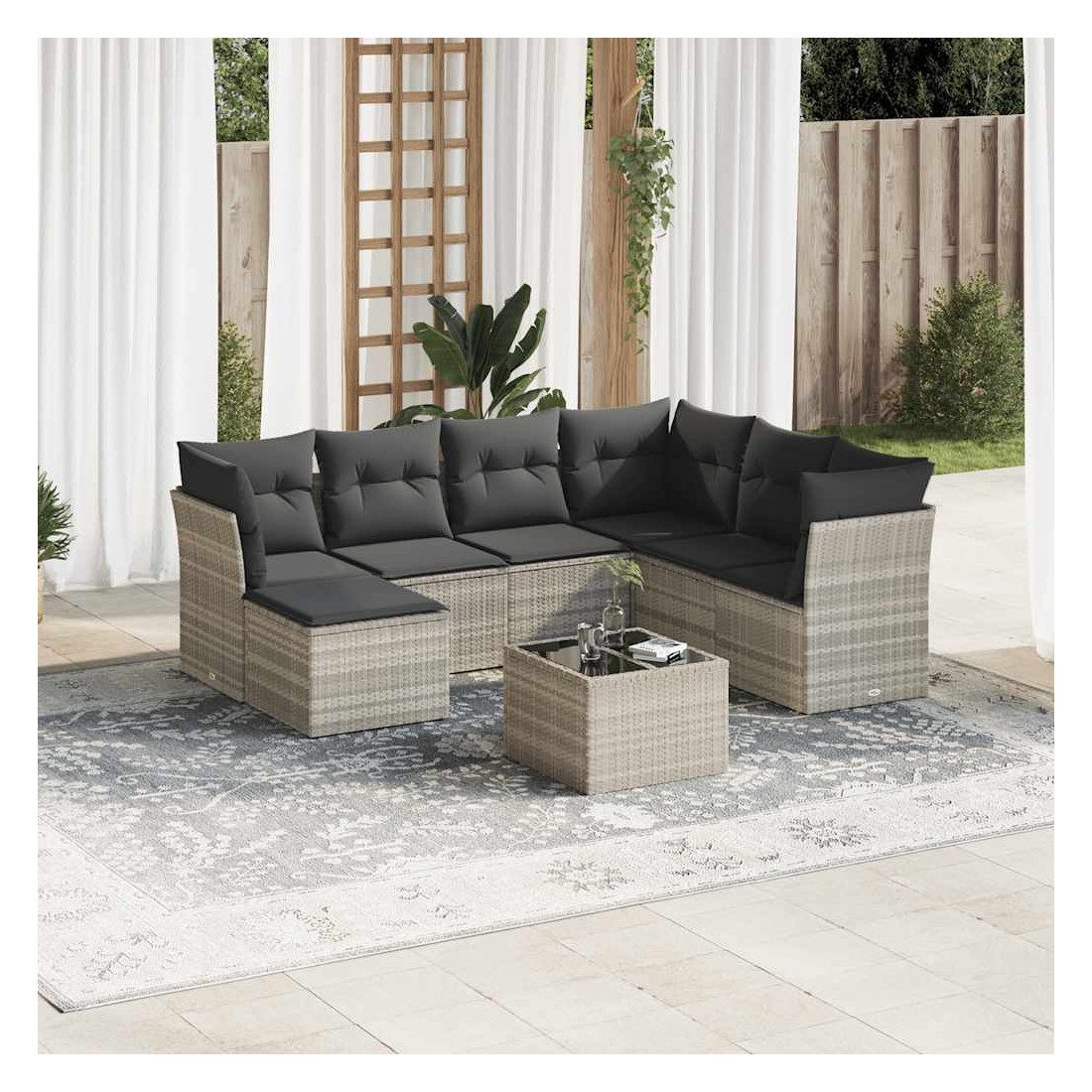 Cet ensemble de canapés de jardin est le complément parfait de votre arrière-cour, terrasse ou patio, offrant un espace confortable et accueillant pour discuter avec la famille et les amis ou simplement se détendre et profiter de l'extérieur. Matériau durable : la résine tressée, également connue sous le nom de poly rotin, est un matériau synthétique solide et nécessitant peu d'entretien qui ressemble au rotin naturel. Il est léger, facile à nettoyer et couramment utilisé pour les meubles d'extérieur en raison de sa durabilité et de ses propriétés de résistance aux intempéries.Expérience d'assise confortable : ce mobilier d'extérieur, doté de coussins épais, offre une expérience d'assise confortable.Dessus en verre : le dessus de la table d'extérieur est fabriqué en verre trempé solide et durable, ce qui le rend facile à nettoyer avec un chiffon humide et ajoute une touche d'élégance à votre espace extérieur.Housse amovible et lavable : ces coussins de siège sont dotés de housses amovibles pour un lavage et un entretien faciles.Conception modulaire : cet ensemble de meubles d'extérieur a une conception modulaire, ce qui le rend complètement flexible et facile à déplacer, afin que vous puissiez créer un agencement de meubles d'extérieur personnalisé. Bon à savoir :Pour que vos meubles d'extérieur restent beaux, nous vous recommandons de les protéger avec une housse imperméable.