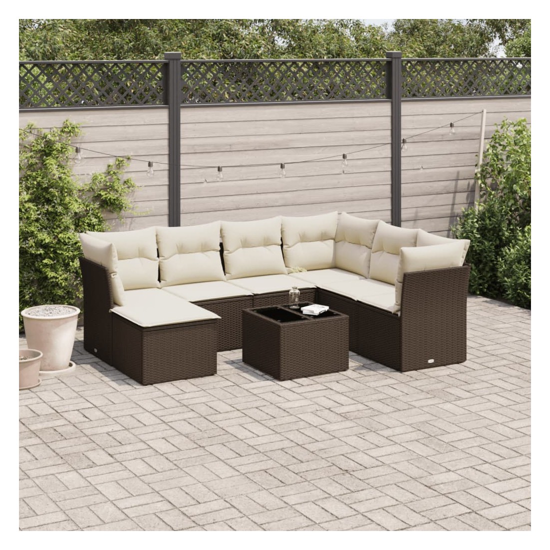 Salon de jardin 8 pcs avec coussins marron résine tressée