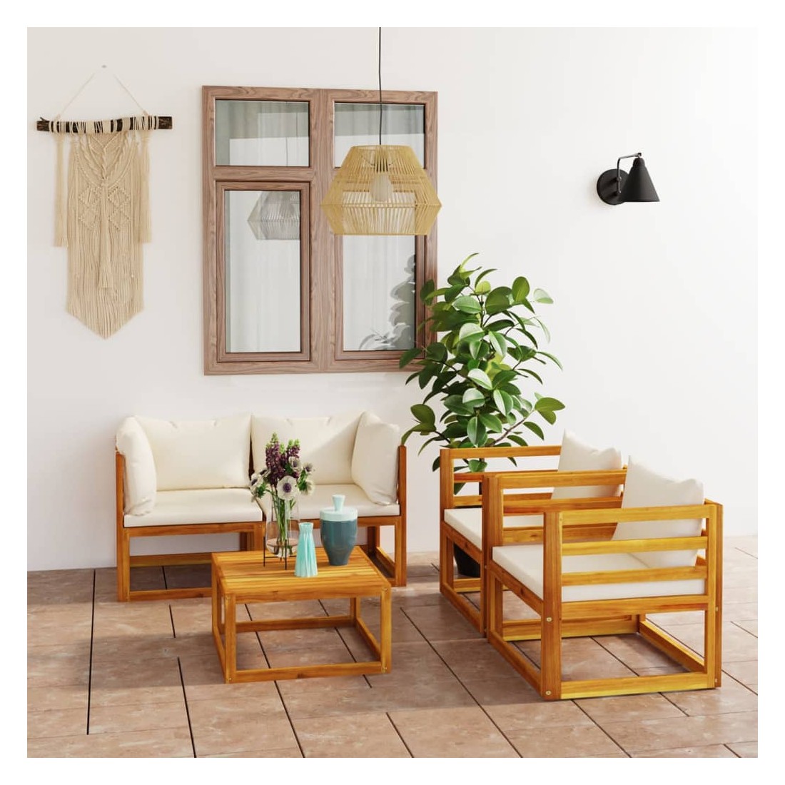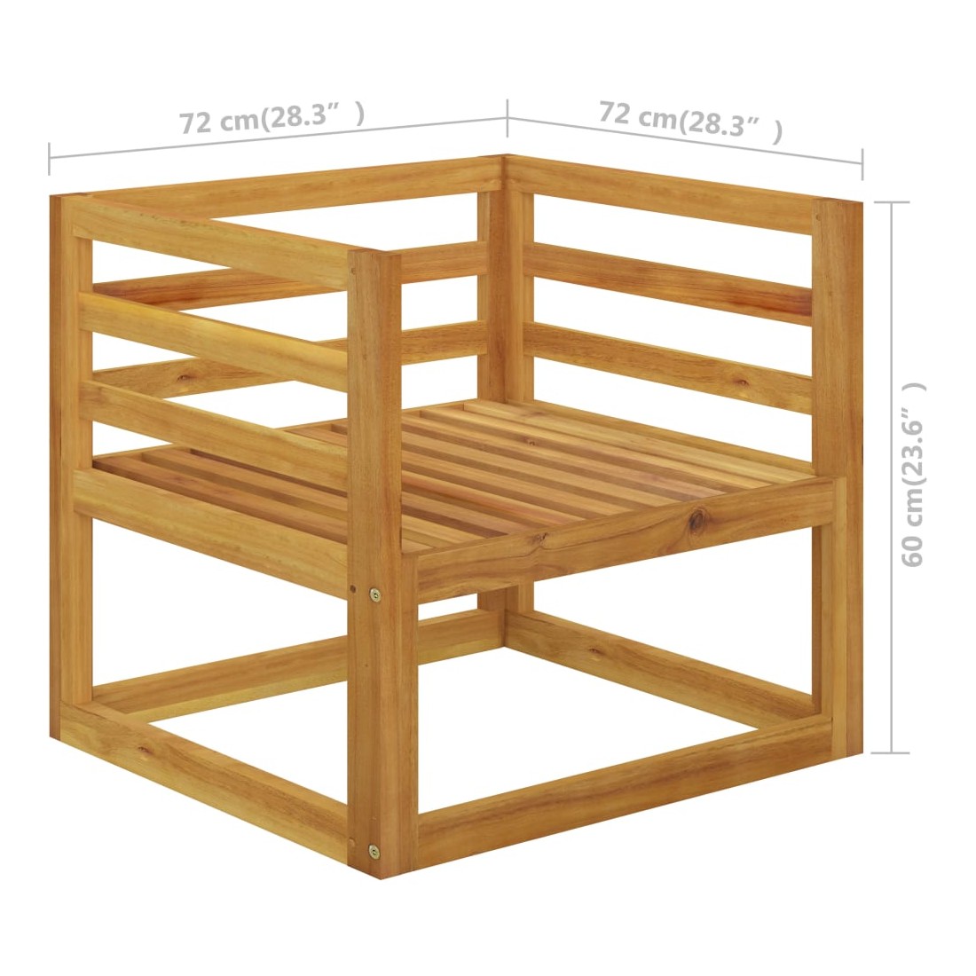 Ce mobilier de jardin en bois est une combinaison parfaite de style et de fonctionnalité. Avec cela dans votre jardin, vous pouvez passer du temps relaxant et apaisant avec votre famille et vos amis. Doté d'un cadre en bois d'acacia massif, l'ensemble de canapé est solide, robuste et durable; et sa finition à l'huile rend l'ensemble de canapé adapté à une utilisation en extérieur. Les coussins d'assise et de dossier amovibles sont épaississement rembourrés, afin d'offrir un grand confort d'assise. Une table basse au design à lattes unique est également incluse. De plus, grâce à sa conception modulaire, toutes les pièces peuvent être arrangées et personnalisées selon vos besoins. Cet ensemble de sièges sera sûrement le point de mire de votre jardin ou patio.