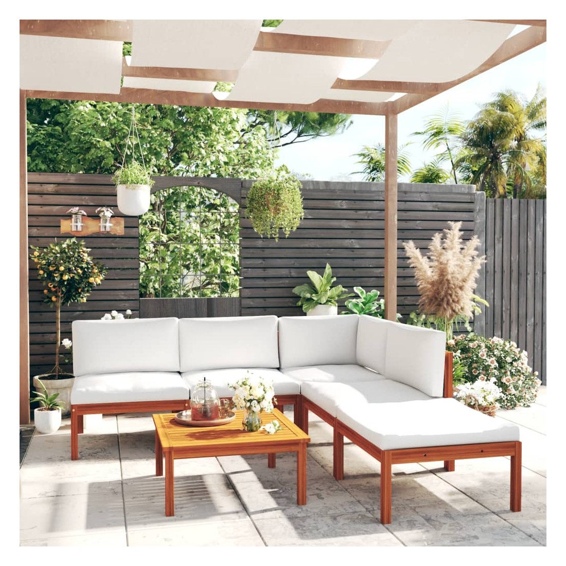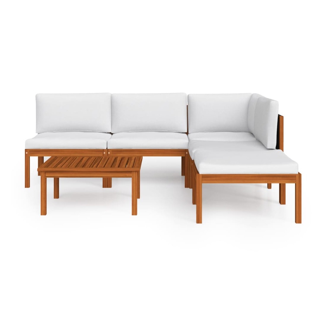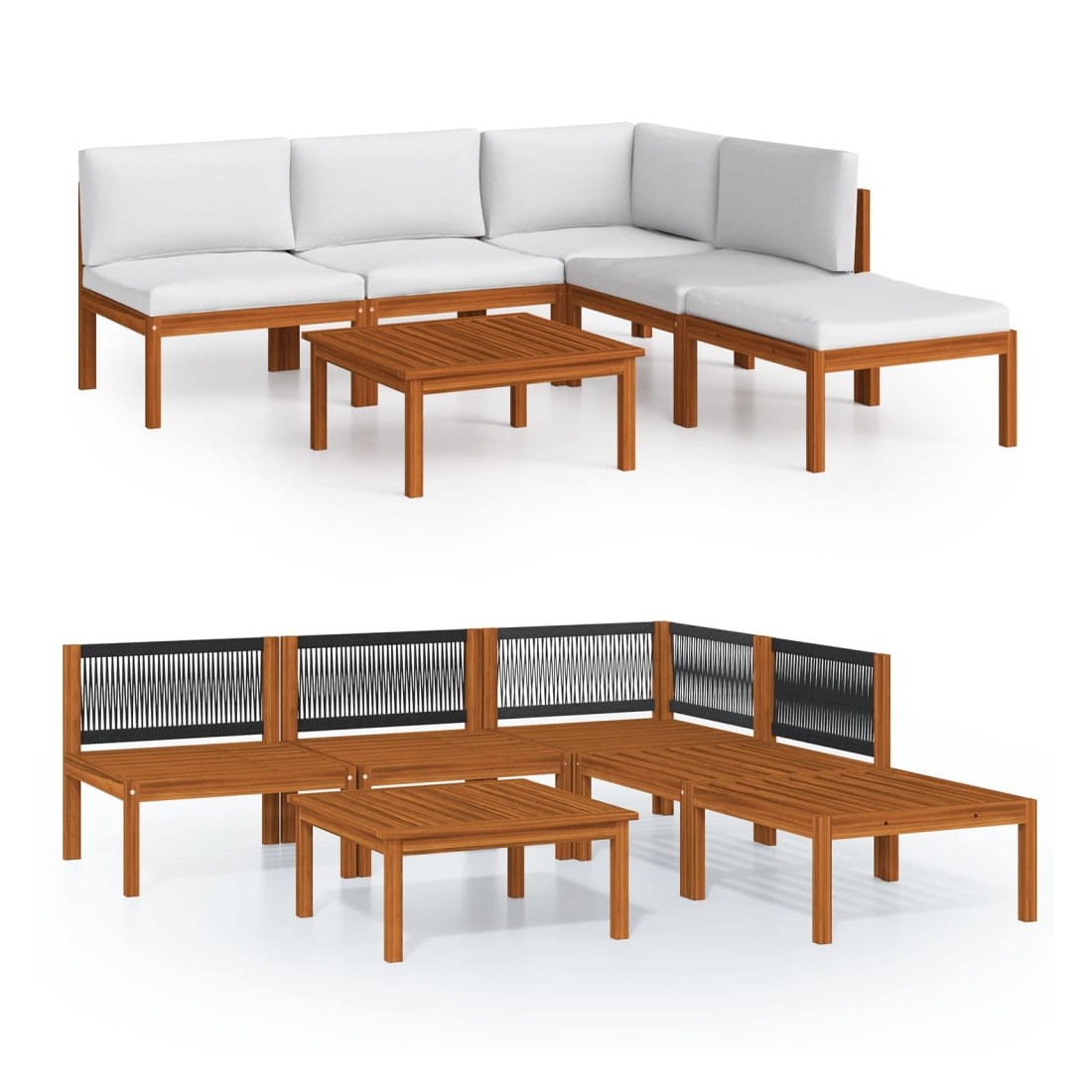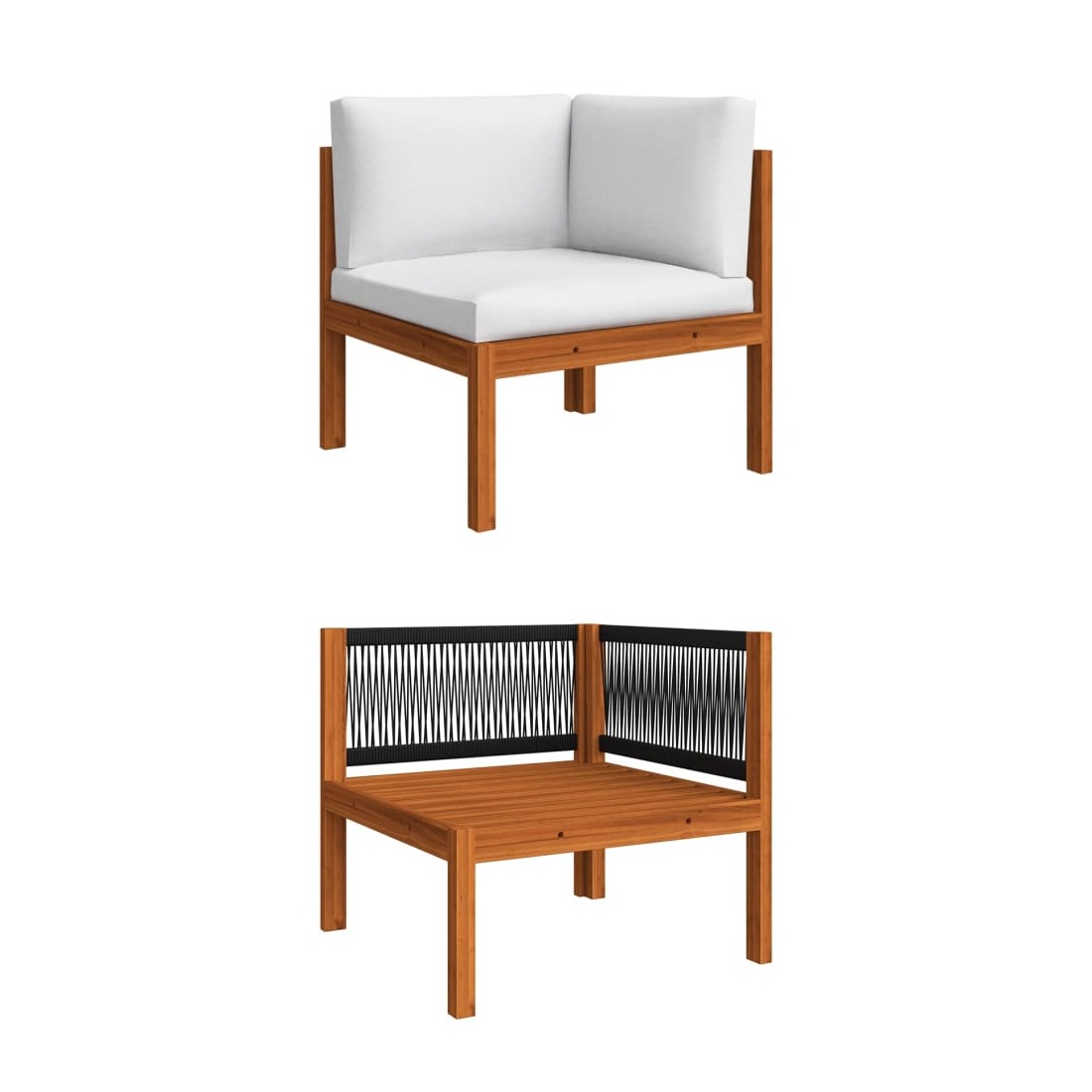 Salon de jardin 6 pièces avec coussins, bois d'acacia crème et corde