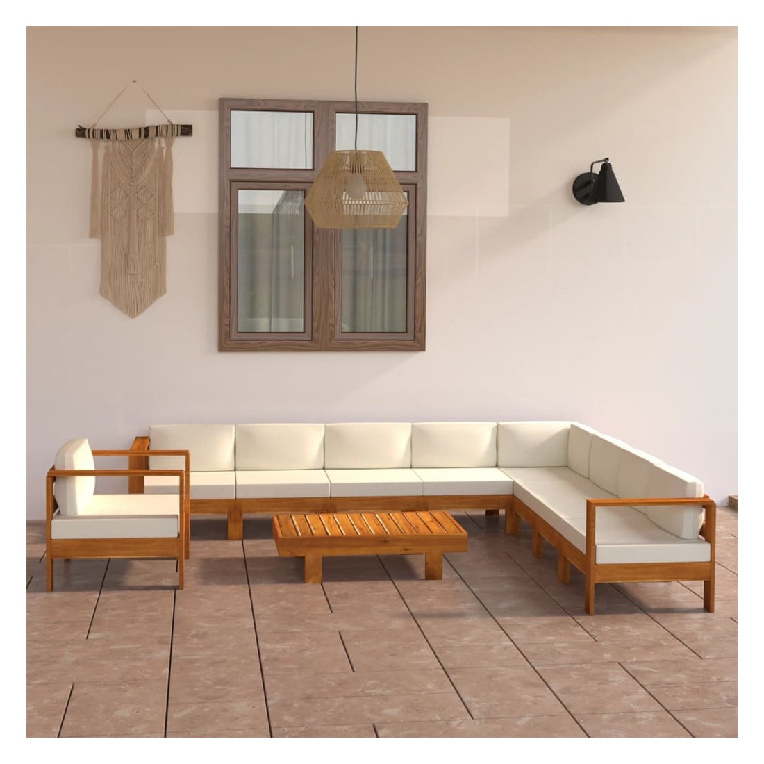 Salon de jardin 10 pièces avec coussins 100 x 60 cm Bois d'acacia