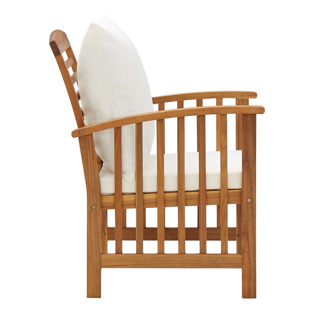 Ce salon de jardin en bois est un choix parfait pour votre jardin, patio ou autre espace de vie extérieur ! Bois d’acacia massif : l’ensemble de meubles d’extérieur est construit en bois d'acacia massif avec une finition à l’huile, ce qui le rend stable et durable. Expérience d’assise confortable : les coussins épais d'assise et de dossier rendent l'ensemble doux pour vous y asseoir. Le dossier légèrement incurvé et les accoudoirs ajoutent au confort d'assise du banc et de la chaise. Table basse pratique : grâce au dessus de table en bois massif au design à lattes, la table basse vous offre de l’espace pour mettre vos collations, paniers de fruits, objets décoratifs, ainsi que d’autres essentiels. Bon à savoir : Les couleurs et les grains varient d'une pièce à l'autre, rendant chaque m
