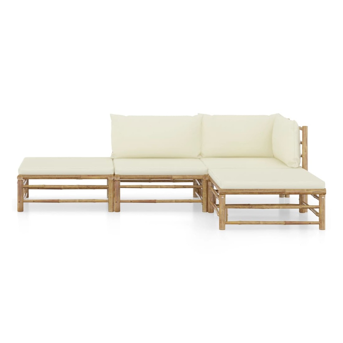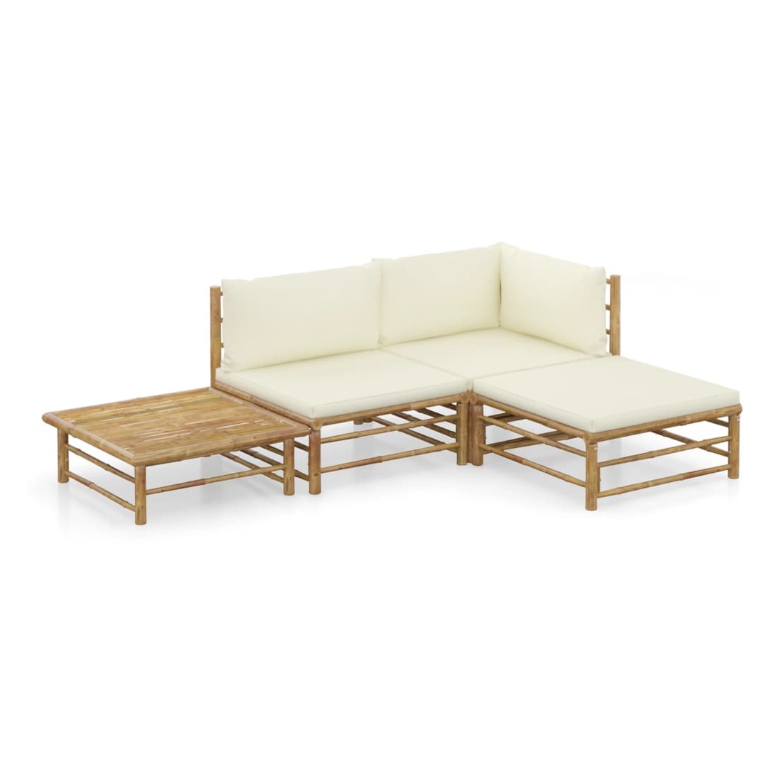 Salon de jardin 4 pcs avec coussins blanc crème bambou