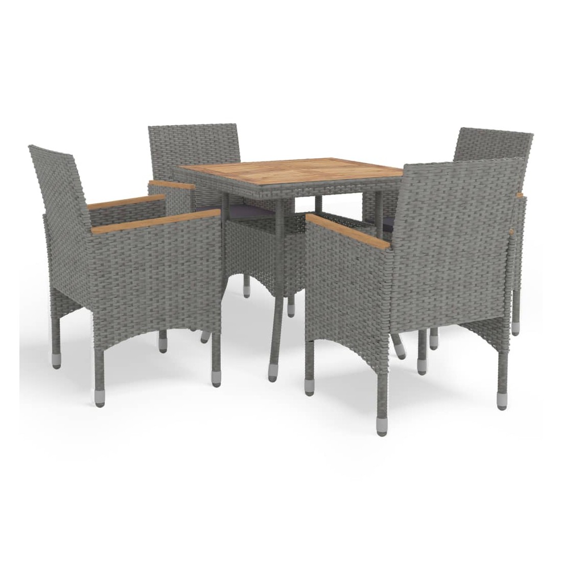 Profitez des réunions en toute simplicité avec notre salon de jardin de 5 pièces ! Cet ensemble de salle à manger peut sans effort répondre aux besoins de vos invités tout en créant un cadre de restauration en plein air parfait ! Cet ensemble de salle à manger est fait d'un cadre en acier renforcé recouvert d'une élégante résine tressée tissée à la main résistante aux intempéries, qui assure le soutien fort et peut être utilisé toute l'année. Le dessus de table et les accoudoirs sont en bois d'acacia massif de qualité, un bois dur tropical, résistant aux intempéries et durable. L'artisanat et les beaux grains de bois rendent chaque meuble unique et légèrement différent l'un de l'autre. Chaque siège est livré avec un coussin amovible bien rembourré pour plus de confort et de soutien pendant votre temps de détente. Toutes les housses de coussin sont amovibles avec un design à fermeture éclair. De plus, la construction légère rend chaque pièce facile à déplacer, à réorganiser et à transporter. Remarque : nous vous recommandons de couvrir l'ensemble pendant la pluie, la neige et le gel.