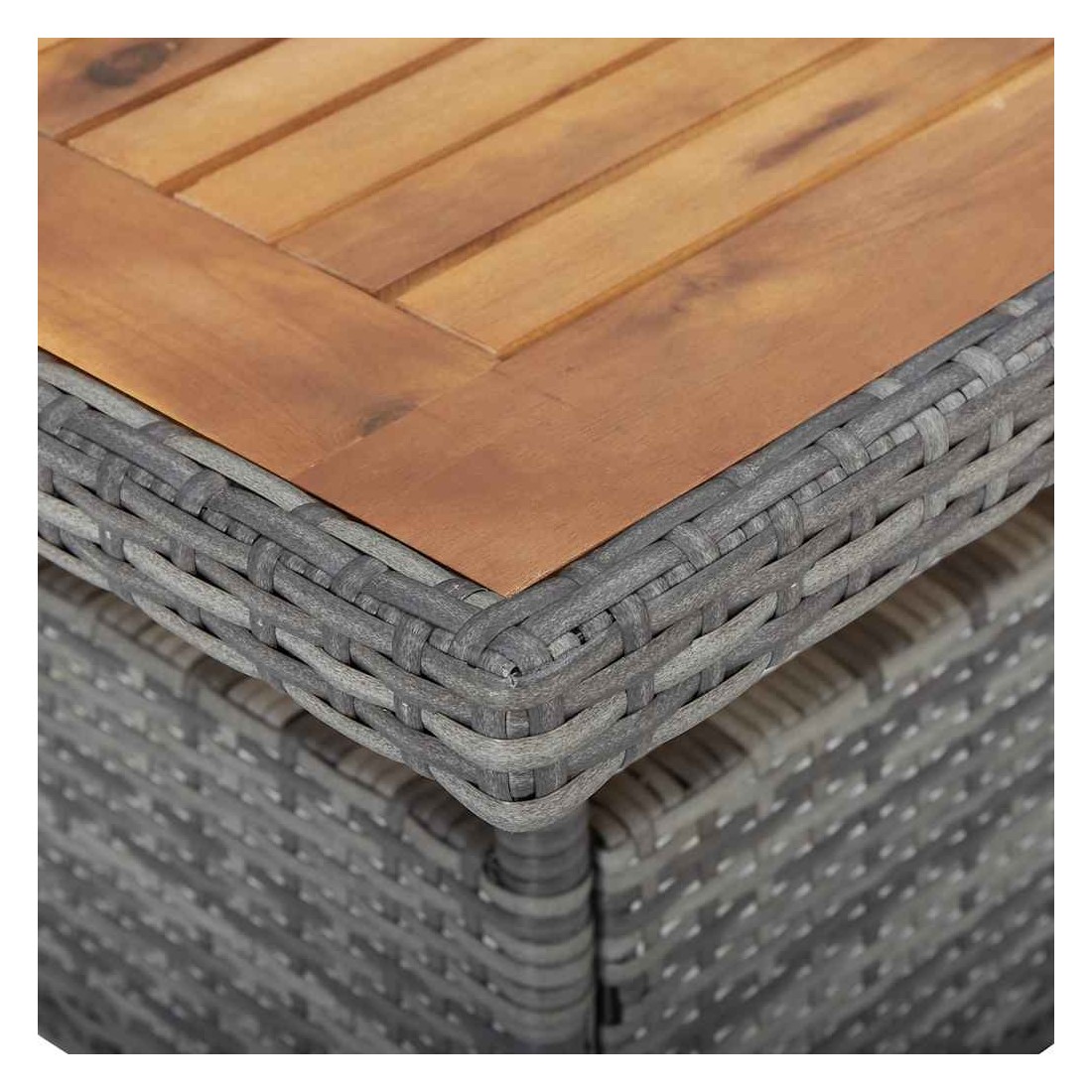- Matériau : résine tressée, bois d'acacia avec une finition à l'huile, acier enduit de poudre