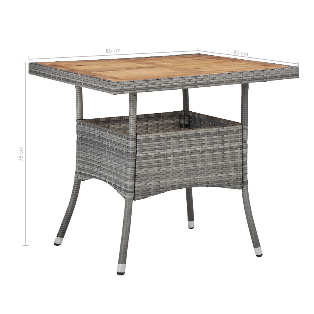 - Dimensions de la table : 80 x 80 x 75 cm (L x l x H)