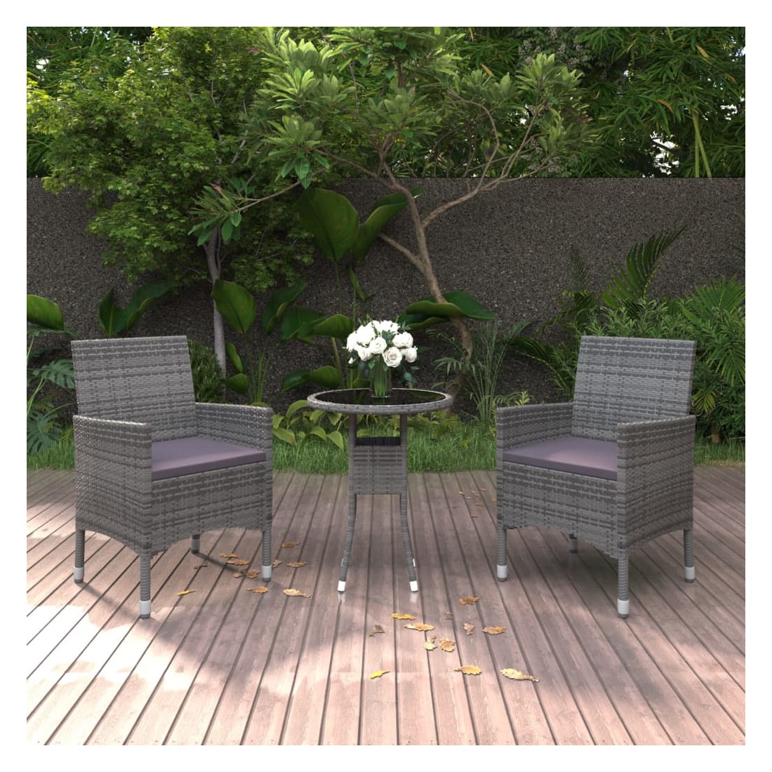 Ensemble à manger de jardin 3 pcs Résine tressée Gris