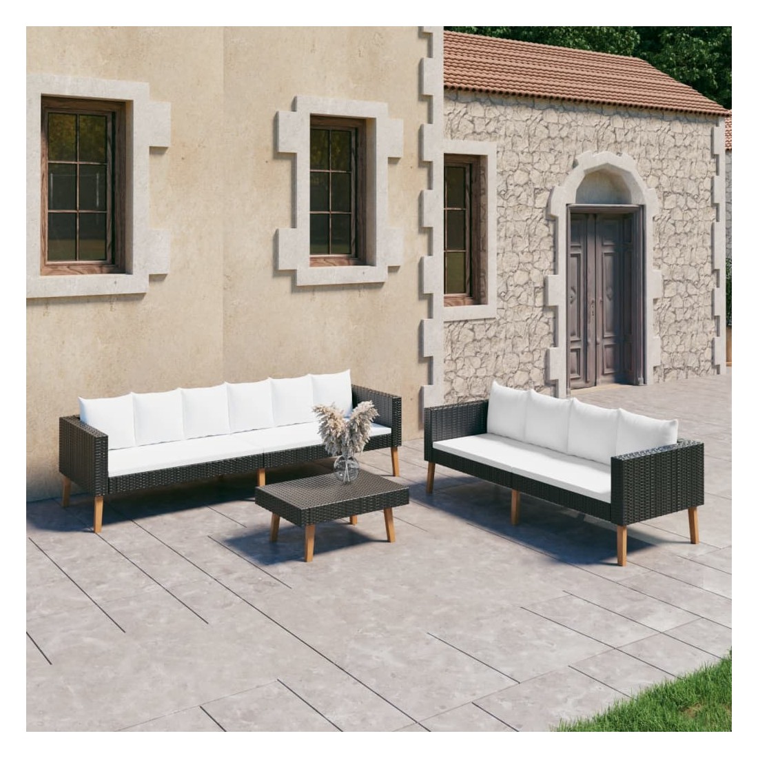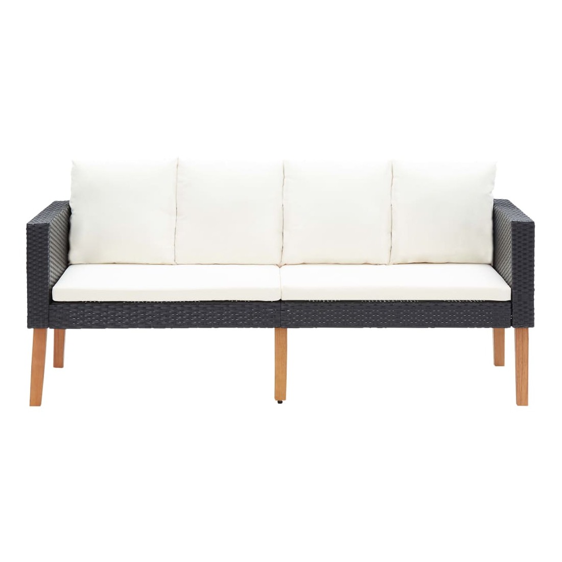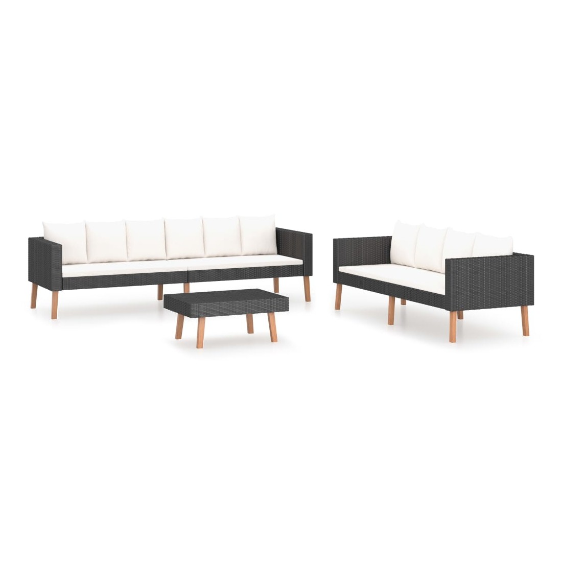 Salon de jardin 3 pcs avec coussins Résine tressée Noir
