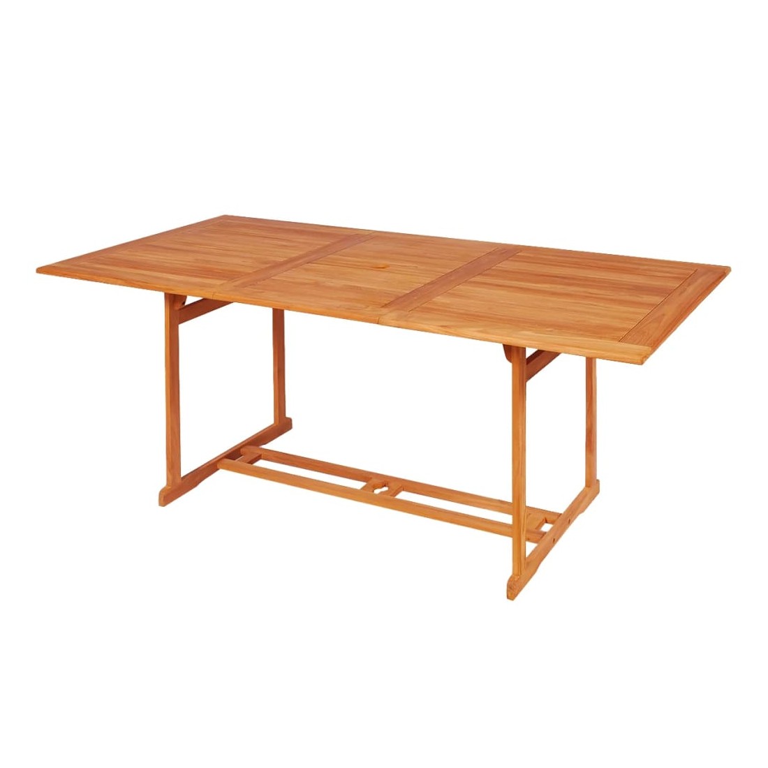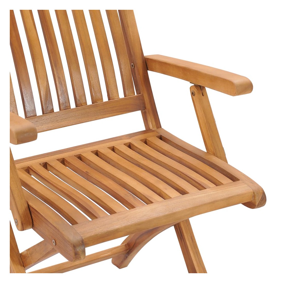 Cet ensemble de jardin en bois est parfait pour vos repas ou pour vous détendre dans le jardin ou sur le patio. Il est également idéal pour une utilisation à l'intérieur. Fabriquée en bois dur de teck extrêmement durable, cette pièce de meuble en teck a été chevronnée, séchée au four puis finement poncée pour lui donner un aspect très lisse. Le bois de teck est connu pour sa résistance exceptionnelle aux intempéries, ce qui le rend bien plus adapté aux meubles de jardin que tout autre type de bois. Le bois de teck est le choix idéal si vous souhaitez acheter une pièce de meubles de jardin durable. L’ensemble est appliqué avec une belle finition pour donner au bois une couleur chaude. La table comprend un trou pour un parasol afin de vous protéger du soleil. Les sièges et les dossiers incurvés des chaises peuvent bien s’adapter à votre corps. Avec un design pliable, les chaises peuvent être pliées pour économiser de l’espace lorsqu'elles ne sont pas utilisées. Elles sont également légères et faciles à déplacer. L’ensemble de meubles vous offre un confort et une grande commodité pour passer du temps avec votre famille et vos amis. De plus, cet ensemble est également facile à nettoyer avec un chiffon humide.