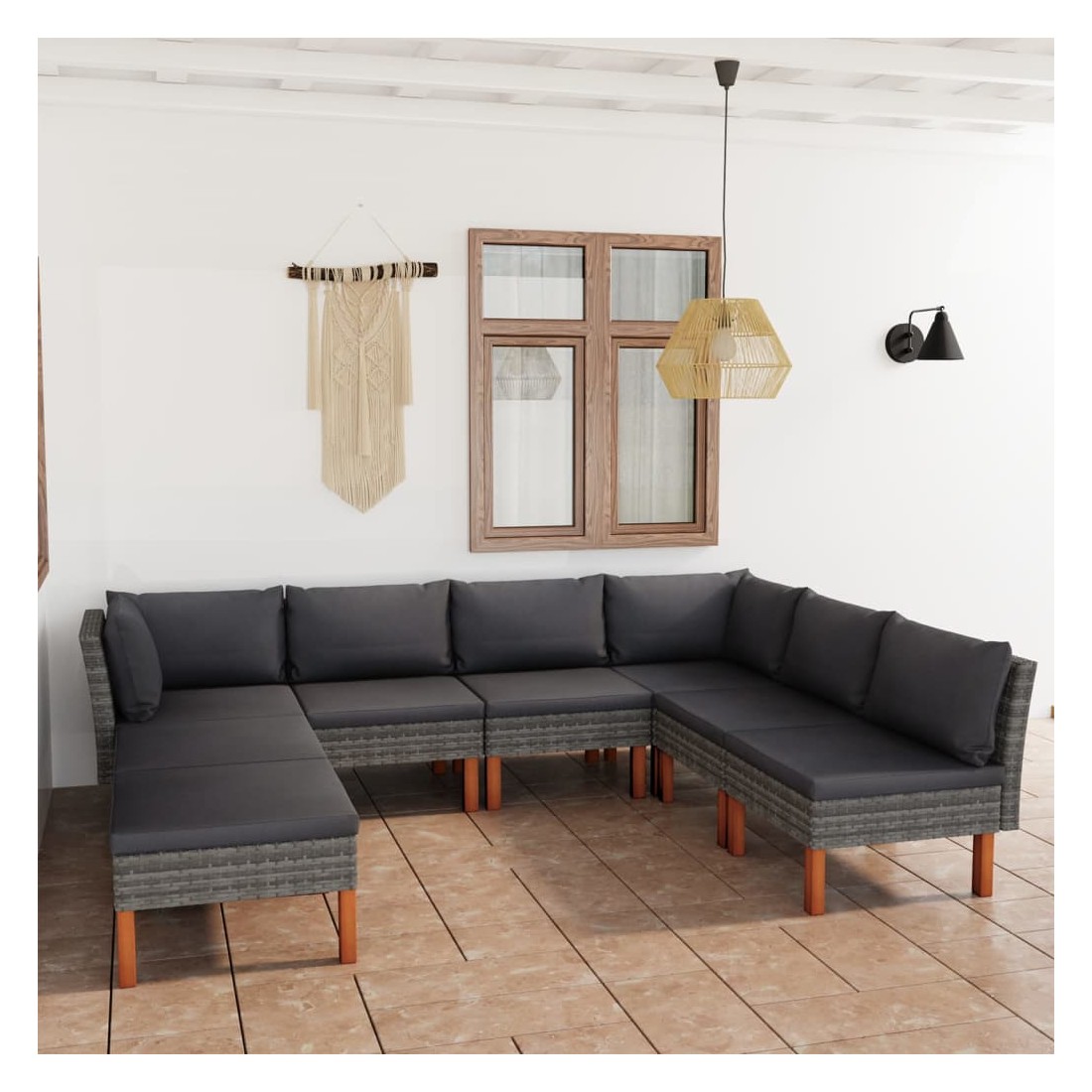 Cet ensemble de salon de jardin élégant et confortable, est un choix idéal pour vous détendre et profiter du beau temps, faire une sieste ou discuter avec votre famille ou vos amis. Doté d’un cadre en acier enduit de poudre recouvert de résine tressée, l'ensemble de canapé est résistant aux intempéries et facile à nettoyer. Les pieds en bois d’eucalyptus massif contribuent à sa robustesse et à sa stabilité. L'ensemble de salon est livré avec des coussins rembourrés pour un confort suprême. Dotée d'une fermeture éclair, la housse des coussins est amovible et lavable. De plus, cet ensemble de canapés d'extérieur peut être facilement déplacé pour s’adapter à n’importe quelle configuration grâce à sa construction légère. Remarque : afin de prolonger la durée de vie des meubles d'extérieur, nous vous recommandons de les protéger avec une housse imperméable.