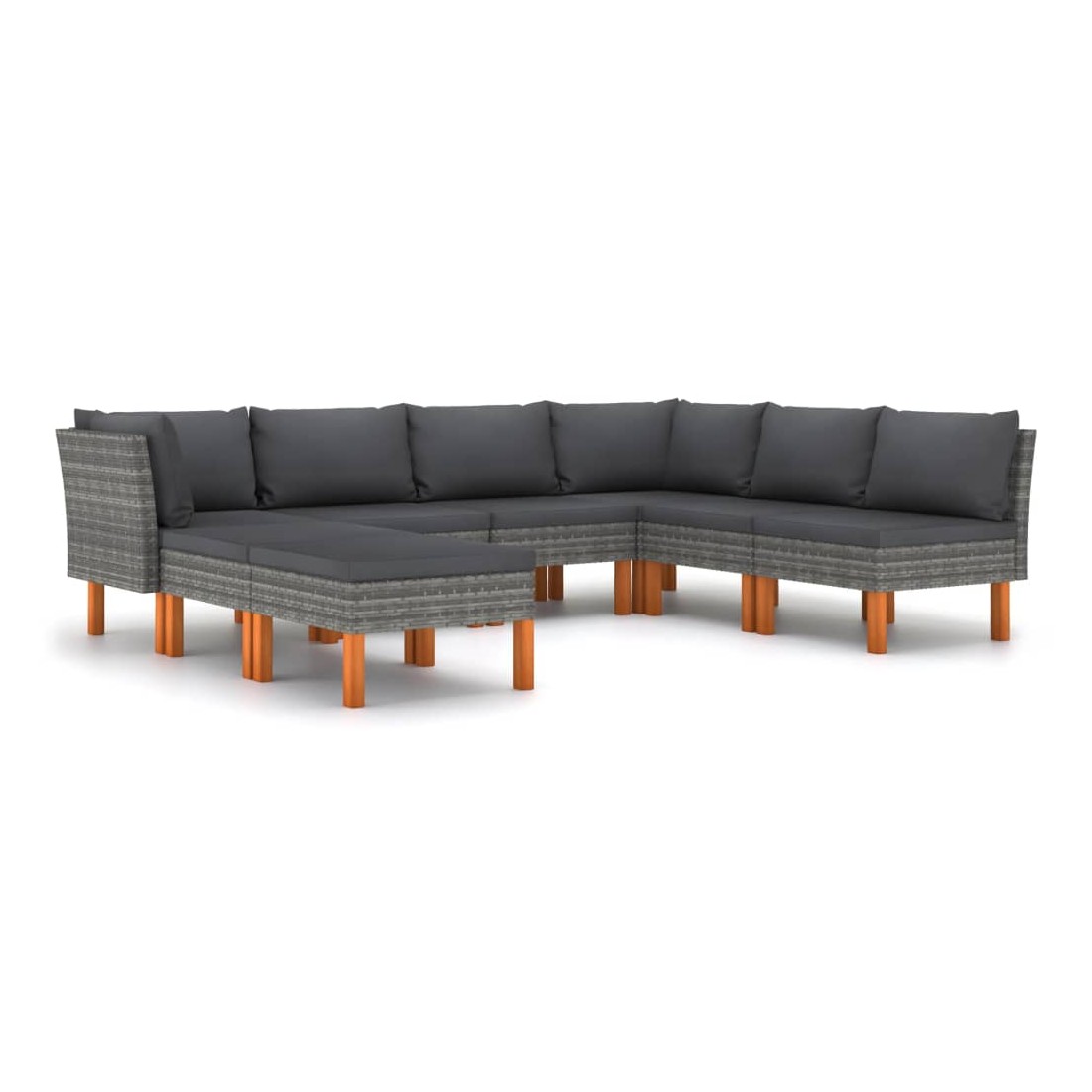 Salon de jardin 8 pcs avec coussins Résine tressée Gris