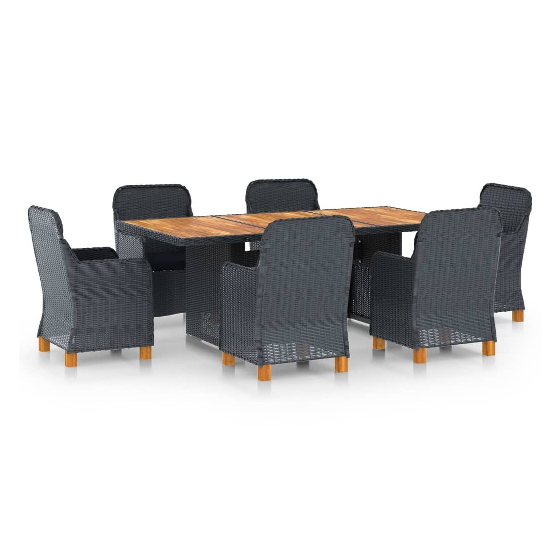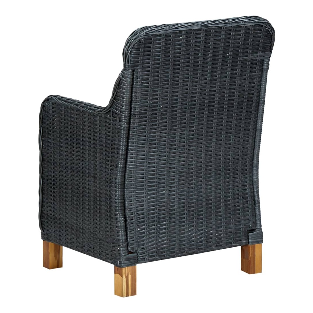 Cet ensemble à manger d'extérieur est une combinaison parfaite de style et de fonctionnalité et est destiné à être le point de mire de votre jardin, balcon ou patio. L’ensemble de meubles est fait de résine tressée ronde légère et peu exigeante d’entretien, ce qui le rend parfait pour une utilisation à l'extérieur, facile à nettoyer avec un chiffon humide. Grâce à la structure en acier enduit de poudre, les fauteuils et la table sont stables et durables. Le dessus de table solide est parfait pour placer ou afficher vos différents essentiels. Les coussins bien rembourrés ajoutent du confort supplémentaire pendant votre temps de détente. La housse de coussin est équipée d'une fermeture éclair, amovible et lavable. De plus, les pieds en bois d’acacia massif ajoutent à la robustesse et à l