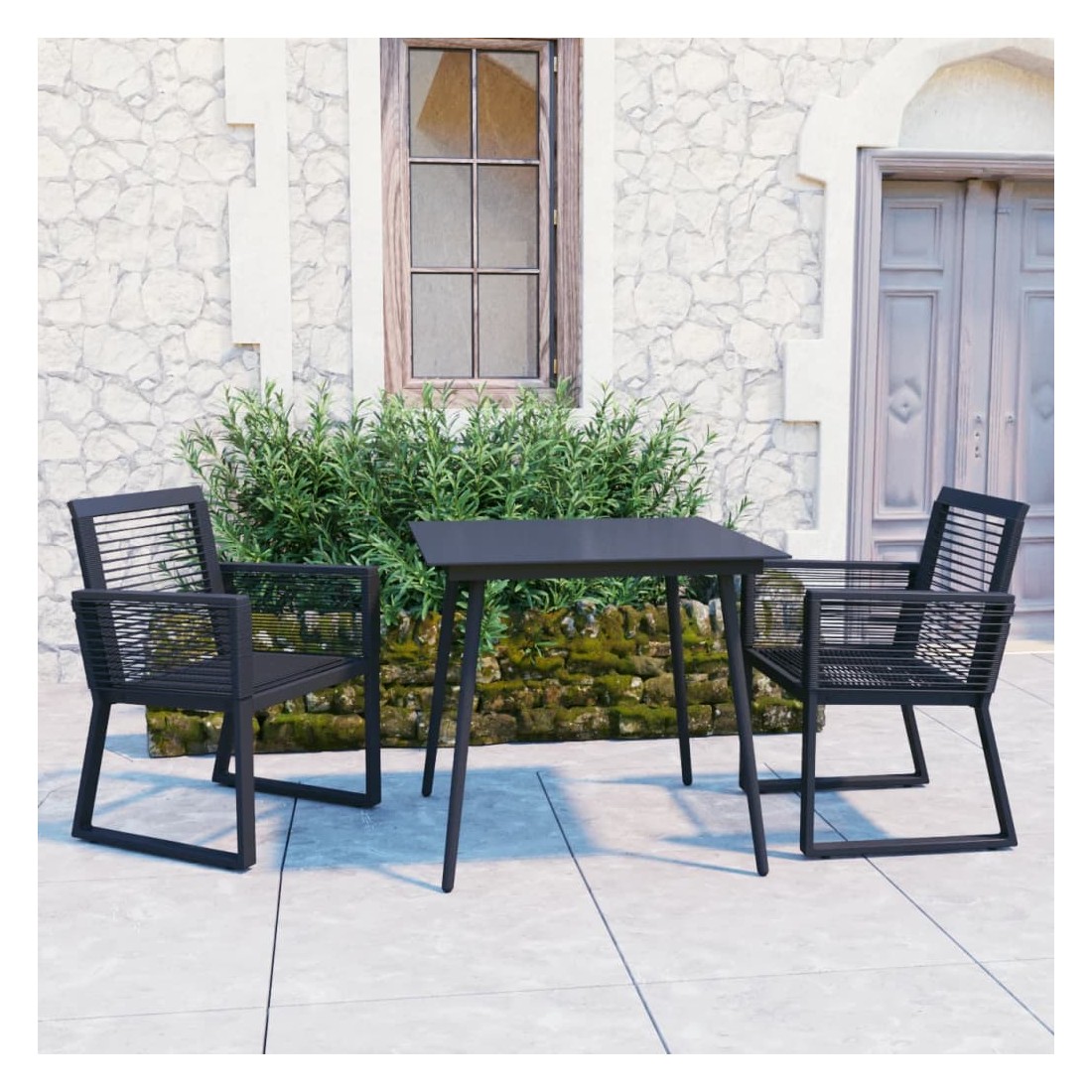Ensemble à manger d'extérieur 3 pcs Rotin PVC Noir